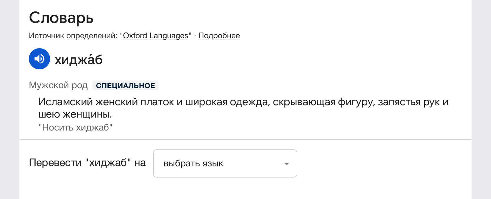 Я с тобой общаюсь на русском языке, в русском языке слово хиджаб означает религиозное арабское одеяние.