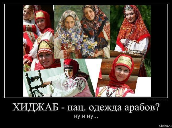 По твоей логике если мусульманка оденется как на фото ( славянский наряд с платком) то его уже нельзя будет назвать хиджабом? Дружище подумай еще раз