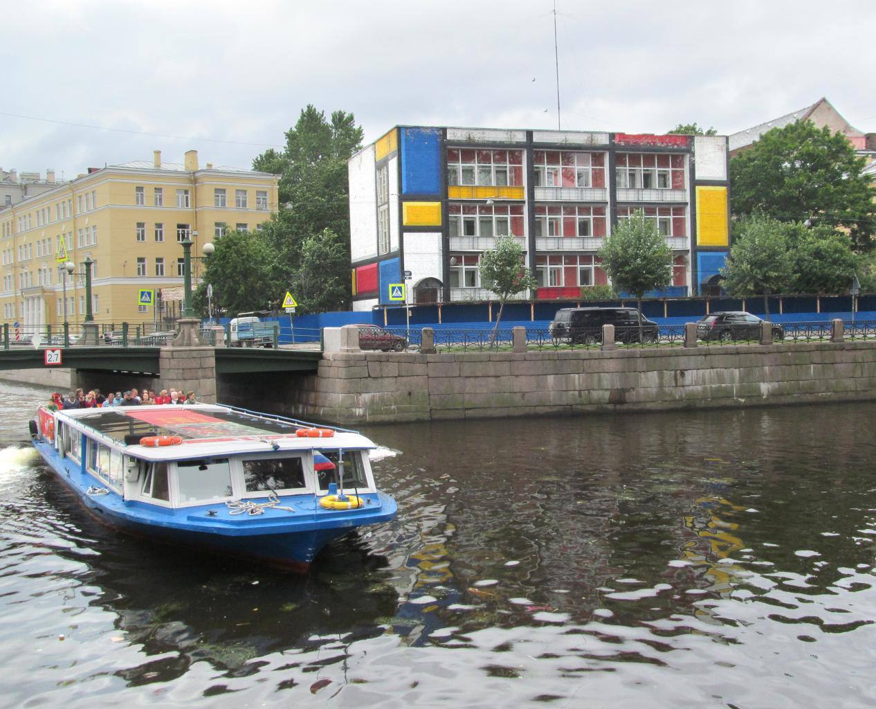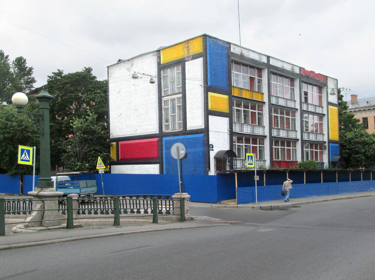 Типовое здание детского садика из силикатного кирпича, построенное в 1961 году на набережной Мойки в Санкт-Петербурге, в 2000-е превратили в хостел, заодно перекрасив под Мондриана. Надо сказать, получилось вполне симпатично, вправду по-голландски. Но в 2013 его снесли, и построили на этом месте жилой комплекс. До садика на этом месте были тюрьма и казарма, размещенные в угловой башне Литовского замка 1780 года постройки.