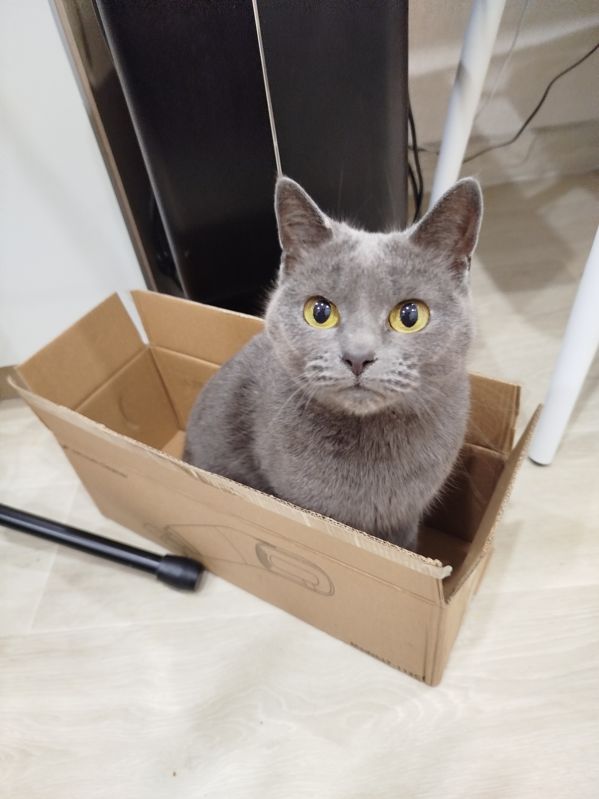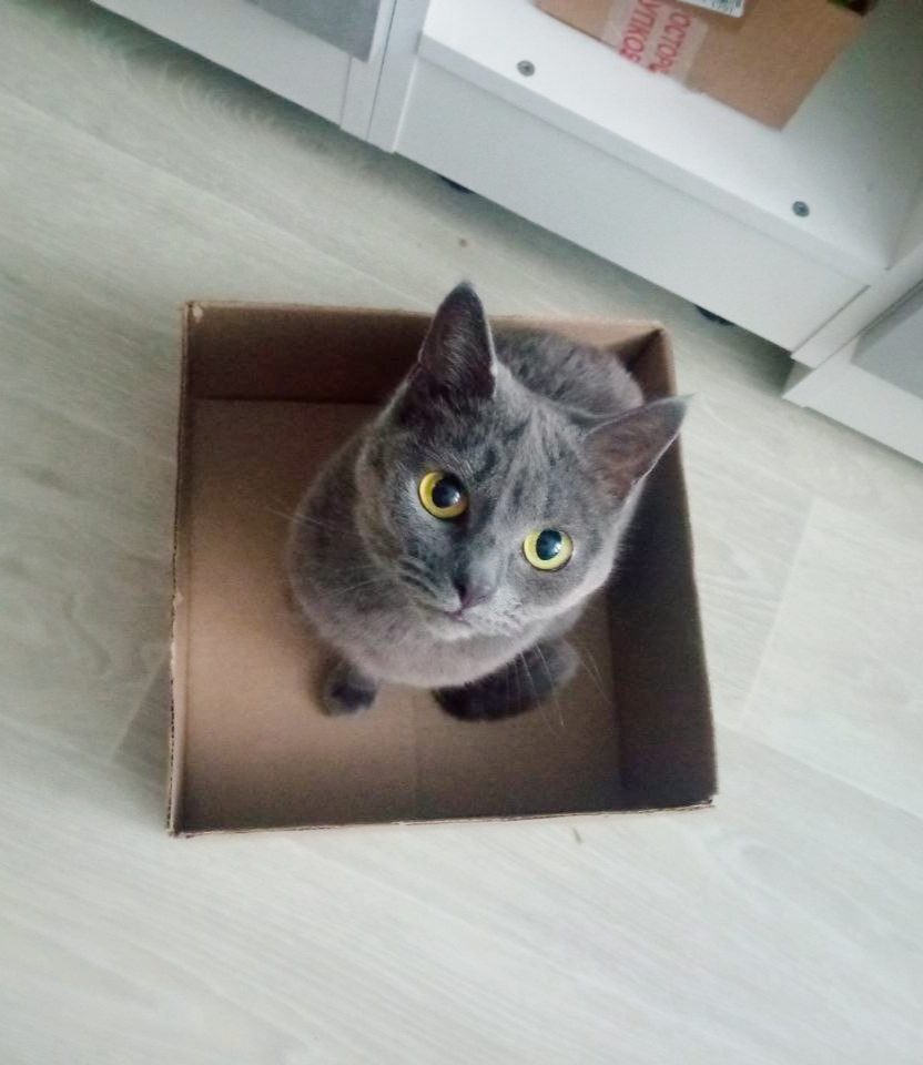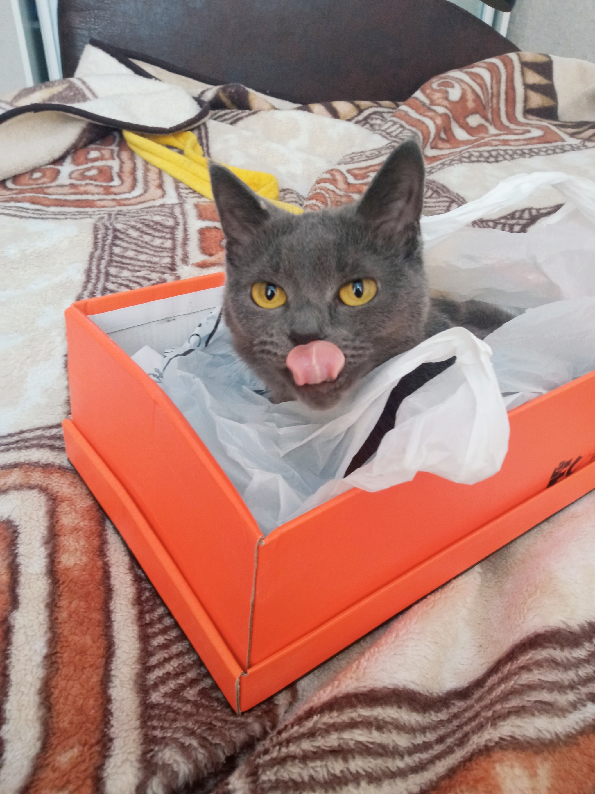 На видео в конце кожаные дали неудобную коробку, бедняжка несколько минут не могла понять как сесть поудобнее и куда деть хвостик. Очень уж странные движения она совершала им в попытках усесться х)
