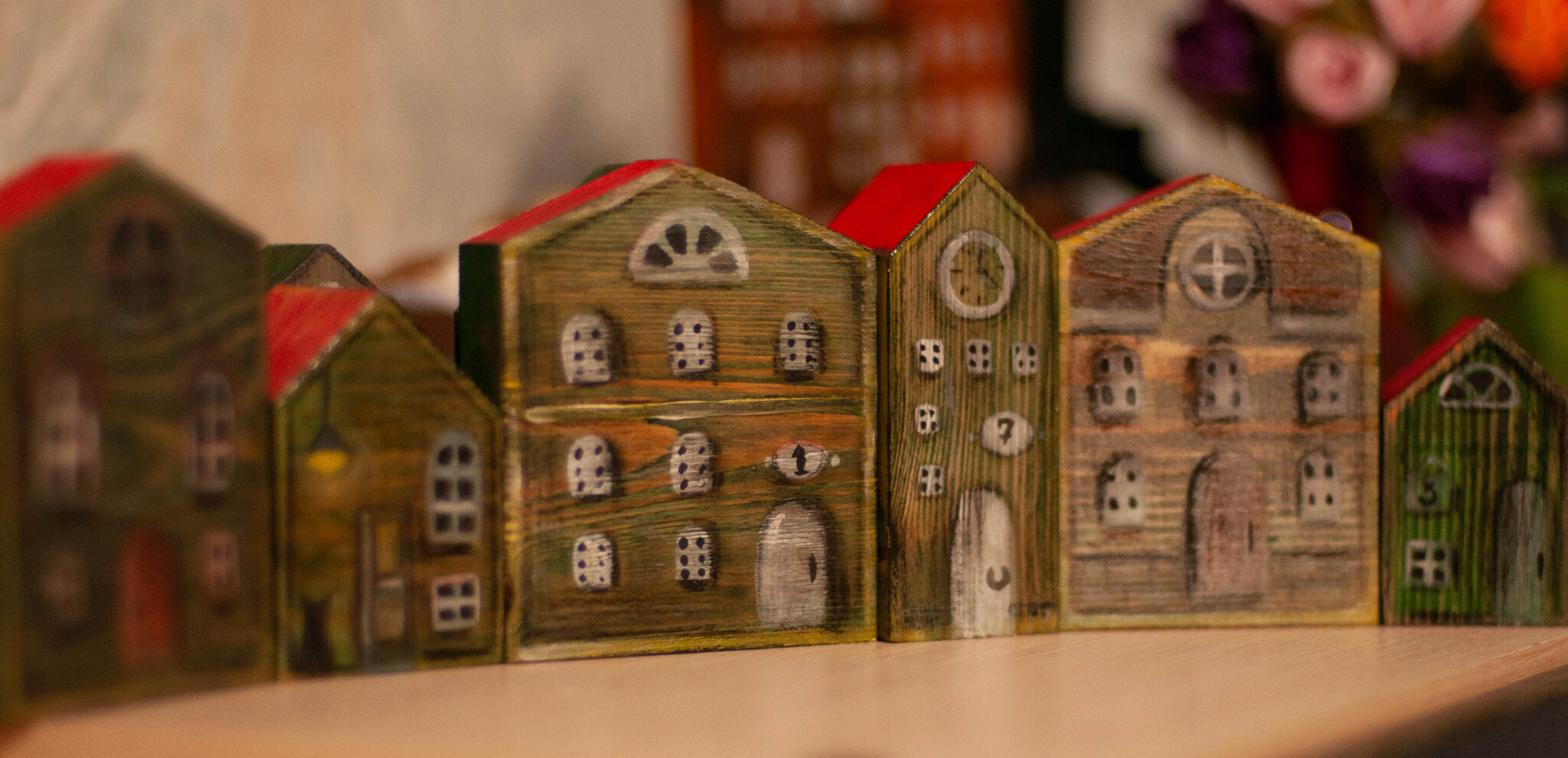 Один из самых интересных заказов за последнее время. Уютные и не слишком яркие домики с эффектом "припыленности".