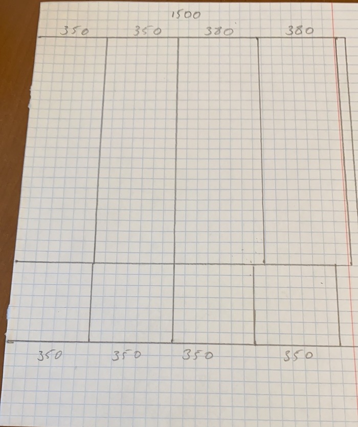 Обратите внимание – два куска шириной 380мм мы будем клеить на внешнюю сторону уже после сборки. Два куска шириной 350мм клеятся на внутреннюю сторону панелей шириной 380мм, с отступами слева и справа по 15мм ( можно сделать отступы побольше, с учётом толщины ковролина или иного покрытия).