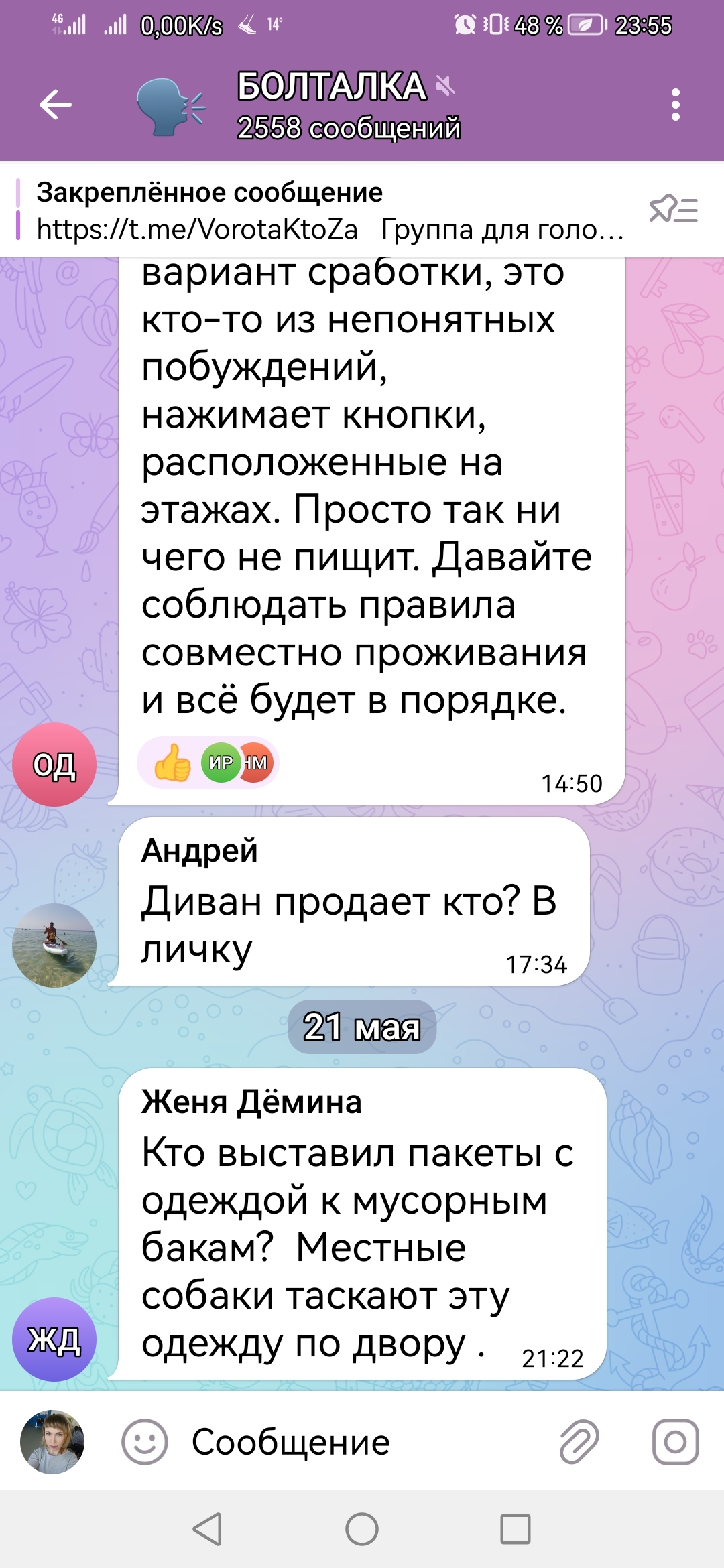 2 Ann2207 Баяны Домовые чаты 6 месяцев назад Вот что на это человек ждёт в ответ?! Типа другой чел ответит: Ах это я, побегу у собак отберу, простите, простите!!!... Домовые чаты это что-то 🤣 Домовой чат Чат Пикабу Длиннопост Ещё 0