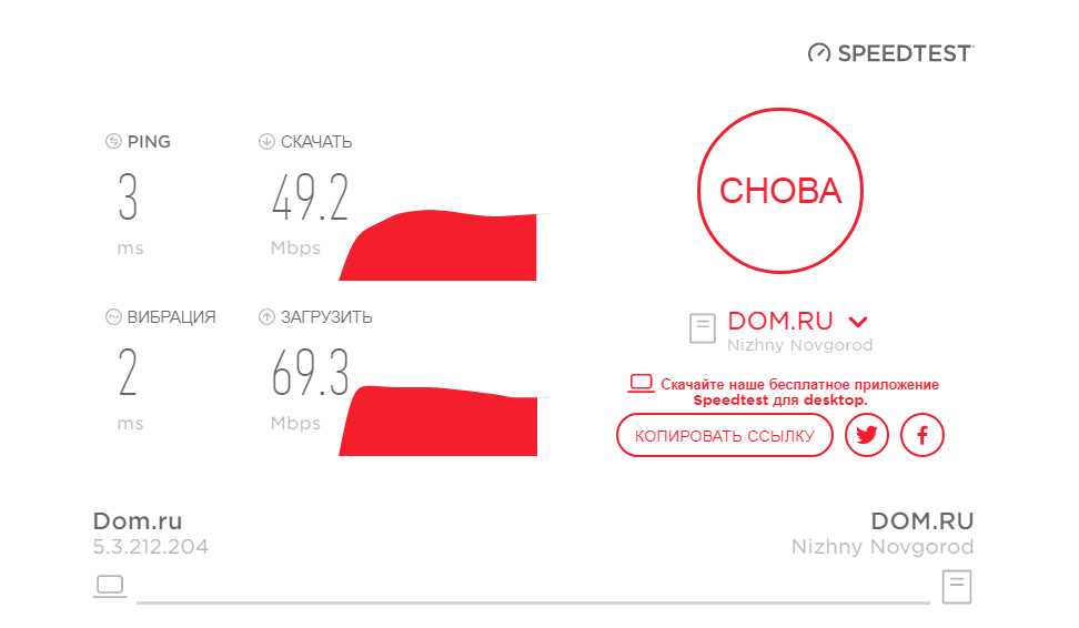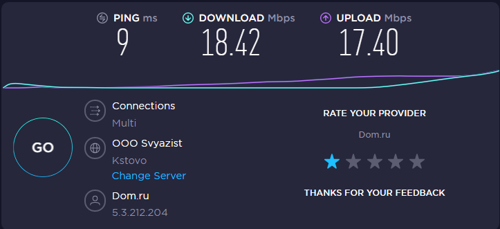 Сейчас интернет подвис и я замерил скорость на их сайте и на speedtest.net