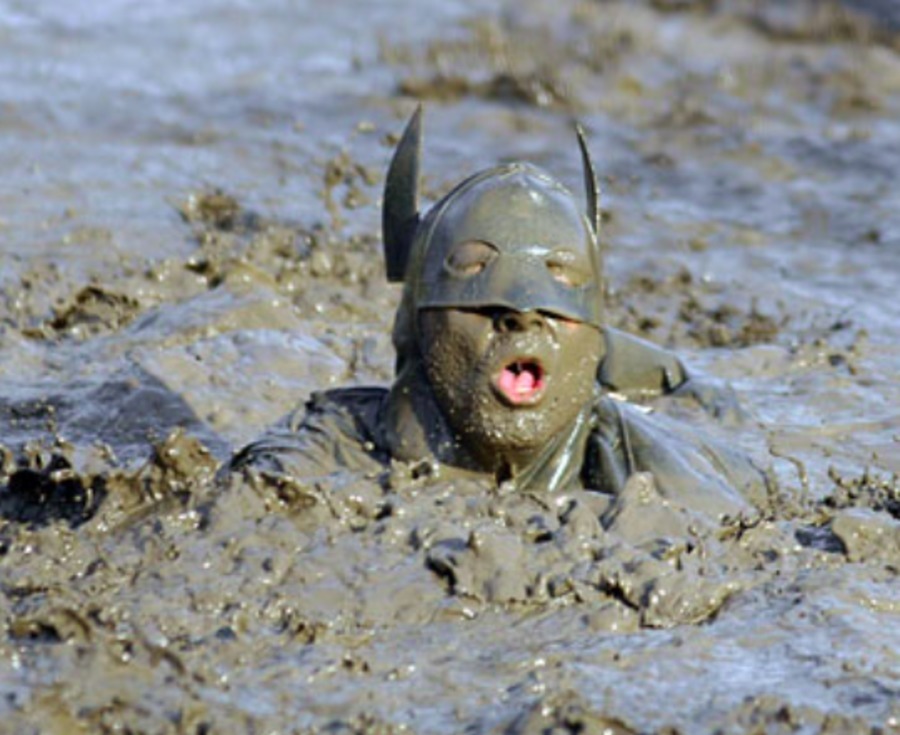 Как вариант, взять автомобильную покрышку, запихнуть внутрь пару кирпичей (тракторную можно без кирпичей) и катнуть на эту прелесть. Покрышка впитает 80%+ всей гадости, будет просто очень громко, но всё же лучше ждать специалистов. К примеру на танке: