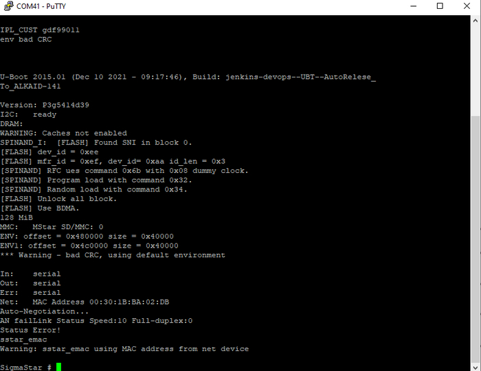 Для работы с одноплатником, обязательно нужен COM-преобразователь. Открываем Putty, задаем COM-порт, выставляем бодрейт 115200 и отключаем контроль четности. После подачи питания на устройство, в консоли побегут логи, U-Boot начнет загружать систему… однако, есть один важный нюанс…