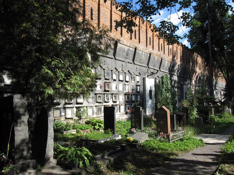 Когда заходишь на территорию, поражаешься рядам стен, в которых, как соты, сделаны многочисленные урны с прахом москвичей.