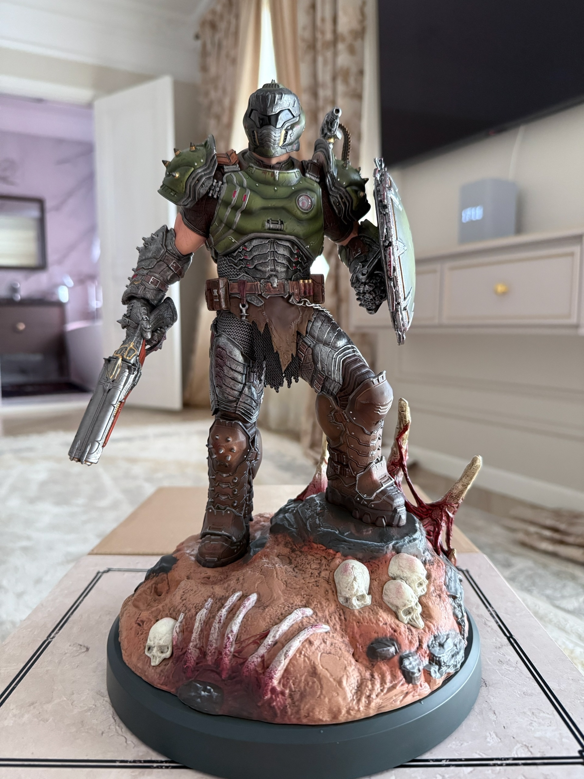Комплект: Диск с игрой DOOM: The Dark Ages Premium Edition; DLC 12-дюймовая статуэтка Палача Рока Копия красной ключ-карты Пакет скинов Divinity Цифровой артбук и саундтрек SteelBook
