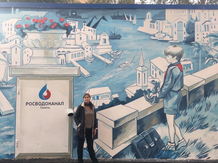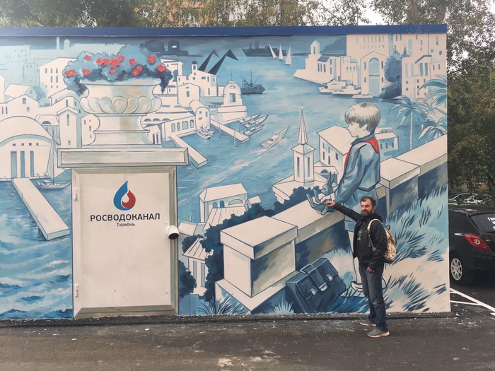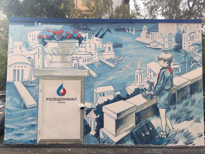 Нарисовали граффити с иллюстрацией из произведения В. Крапивина «Трое с площади Карронад». Заказчиком выступил «Тюмень Водоканал» – граффити появилось на его здании по улице Холодильной, 116.