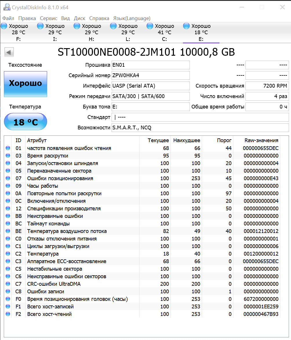 Теперь всё великолепно! Новый диск, все показатели в норме.