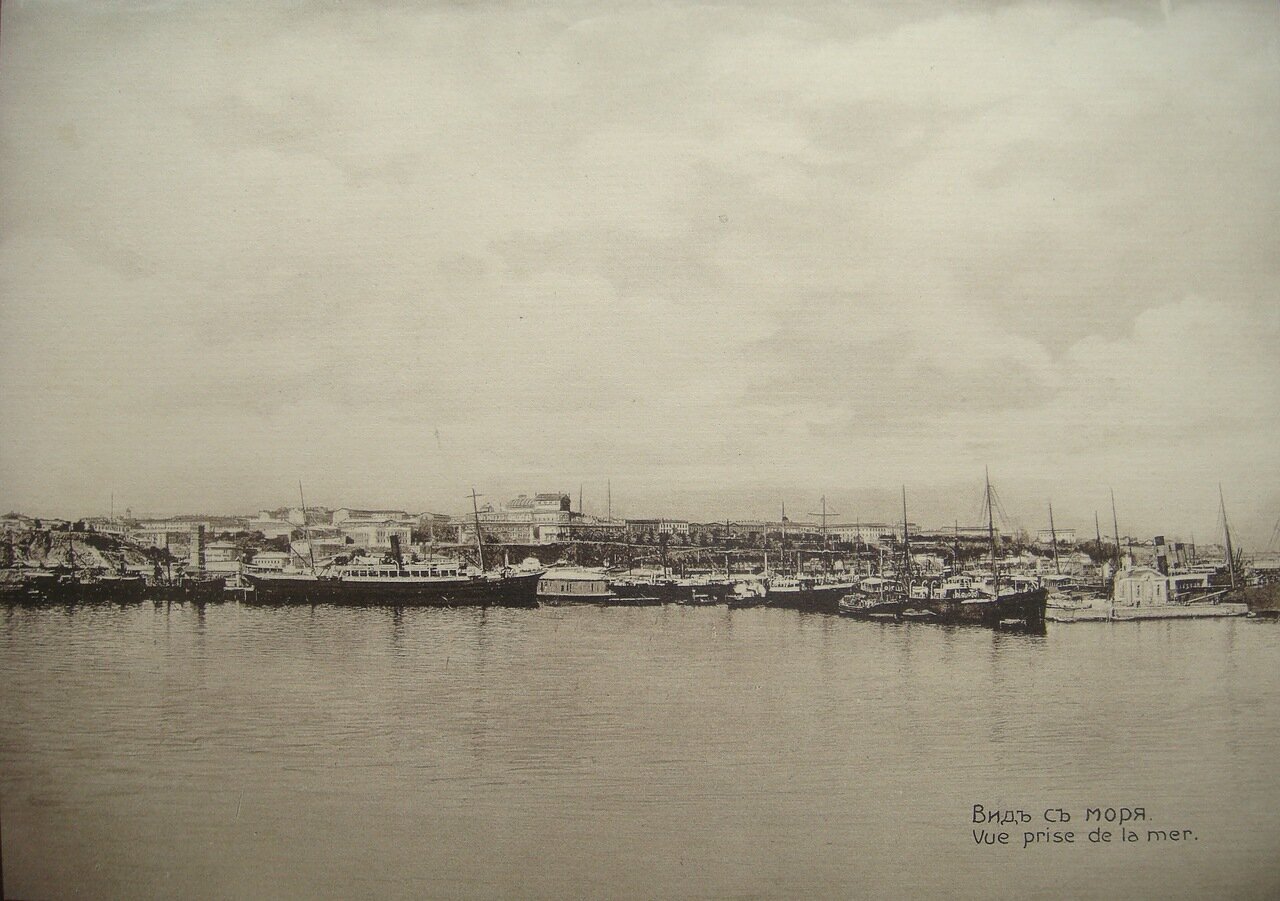 Вторая часть атласа состоит из нескольких листов с нарисованными тушью видами берегов Черного моря в той форме, как они представляются морякам на известном расстоянии с моря. В числе этих видов на XIII листе вторым сверху дан "Вид одесовской рейды в расстоянии 3–х верст". Это первый и самый ранний снимок одесских берегов и города, никем до сих пор не указанный, между тем он имеет большой интерес во всех отношениях... По этому рисунку теперешний Ланжерон был в то время далеко вдающимся в море острым углом высоким мысом. В направлении современного Карантинного мола выдвигалась каменная гряда, послужившая ему первоначальным основанием. Такая же каменная гряда выходила в море продолжением Воронцовского мыса и тоже послужила основанием для Военного мола. На месте теперешнего Николаевскаго бульвара была пустыня с обваливающимся берегом. Впрочем, еще долго и после 1798 г. Николаевский бульвар служил местом свалки мусора, почти до самых тридцатых годов текущего столетия.