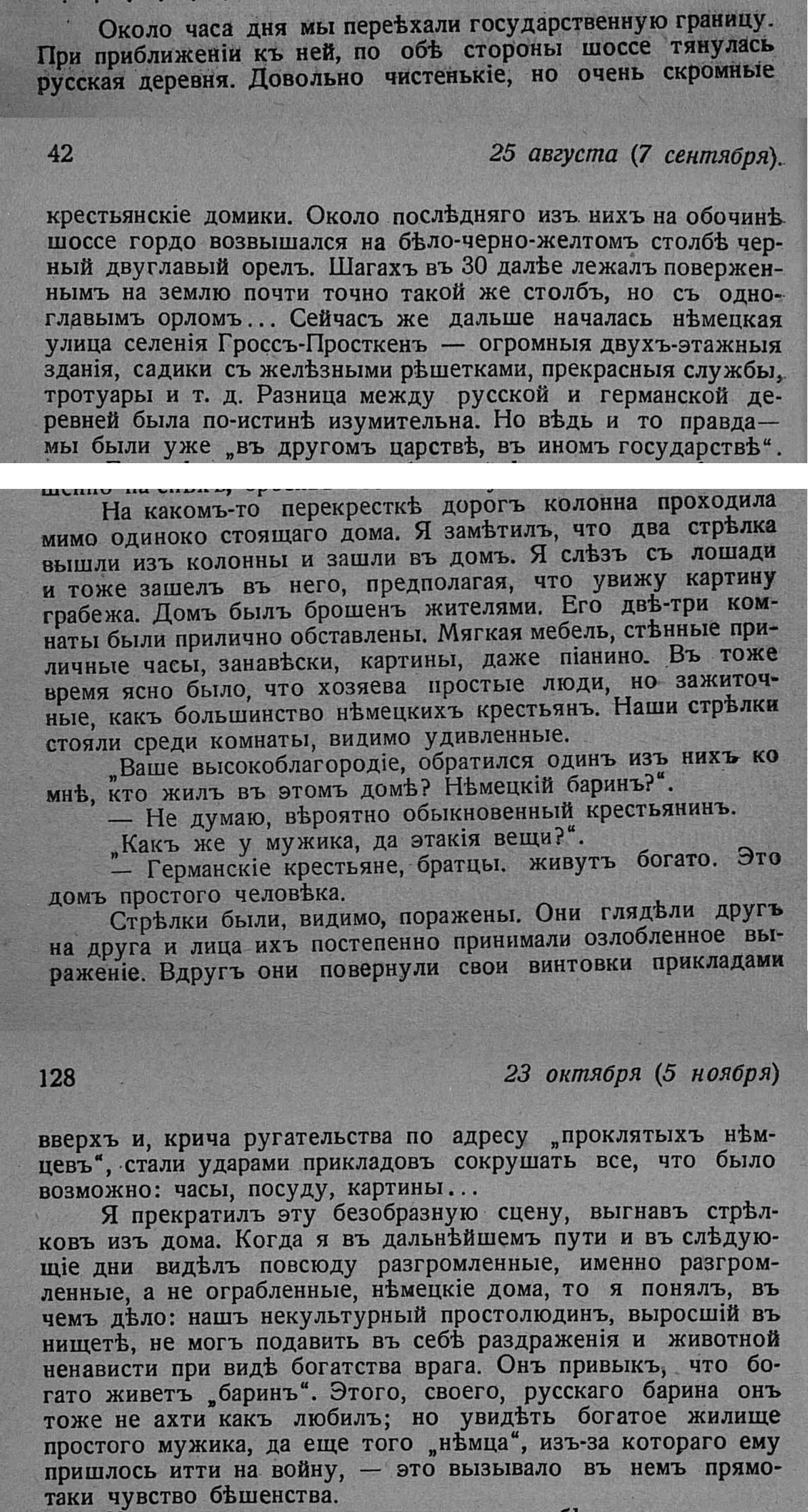 Источник: А. А. Успенскiй. "На войнѣ. Восточная Пруссiя—Литва 1914—1915 г.г. Воспоминанiя." Печатано въ типографiи "STARS", Латвiя, Рига, Ключевая 33. 1932 г.