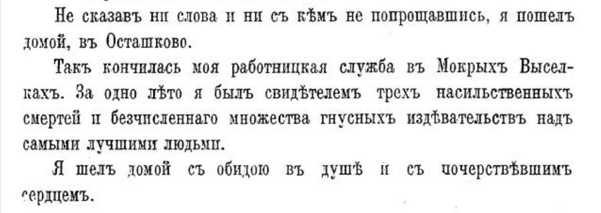 Источник: Ив. Вольновъ. "Пов[e]сть о дняхъ моей жизни. Крестьянская хроника." Кн-во "Прометей" Н. Н. Михайлова. [1914 г.].