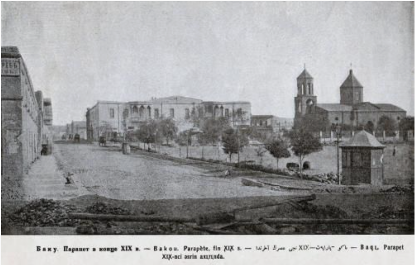 Въезжая в Баку, думаешь, что попадаешь в одну из самых неприступных средневековых крепостей. Тройные стены имеют столь узкий проход, что приходится отпрягать пристяжных лошадей тройки и пустить их гуськом. Проехав через северные ворота, вы очутились на площади, где архитектура домов тотчас же выдает присутствие европейцев. Христианская церковь возвышается на первом плане площади.