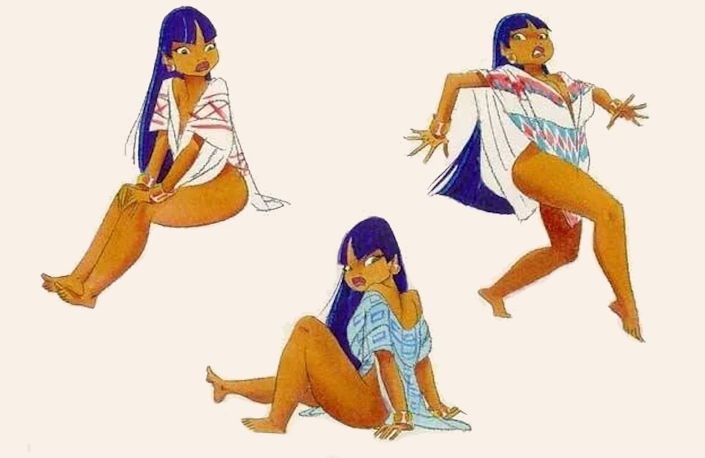 В интернете можно найти множество концепт-артов из «Дороги на Эльдорадо», на которых Чель изображена в хорошо знакомом нам образе: двухцветный топ и набедренная повязка. Однако, на некоторых артах Чель одета в пончо и... и, собственно, всё. Просто пончо на голое тело.