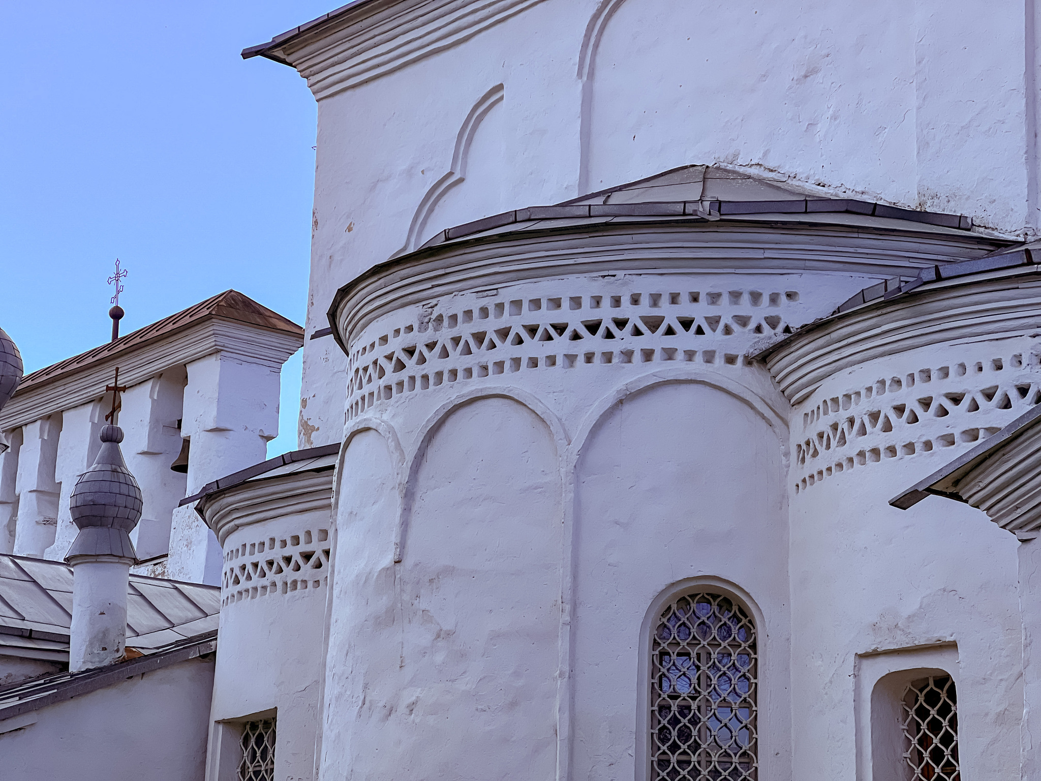 Только у меня тут настоящий поребрик, по документам: это один из двух элементов орнамента Псковской церкви. В прямом смысле любой Псковской церкви, на какую ни глянь, но только допетровского времени.