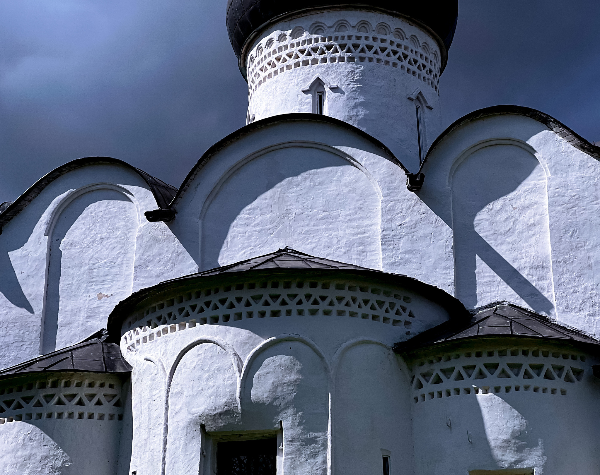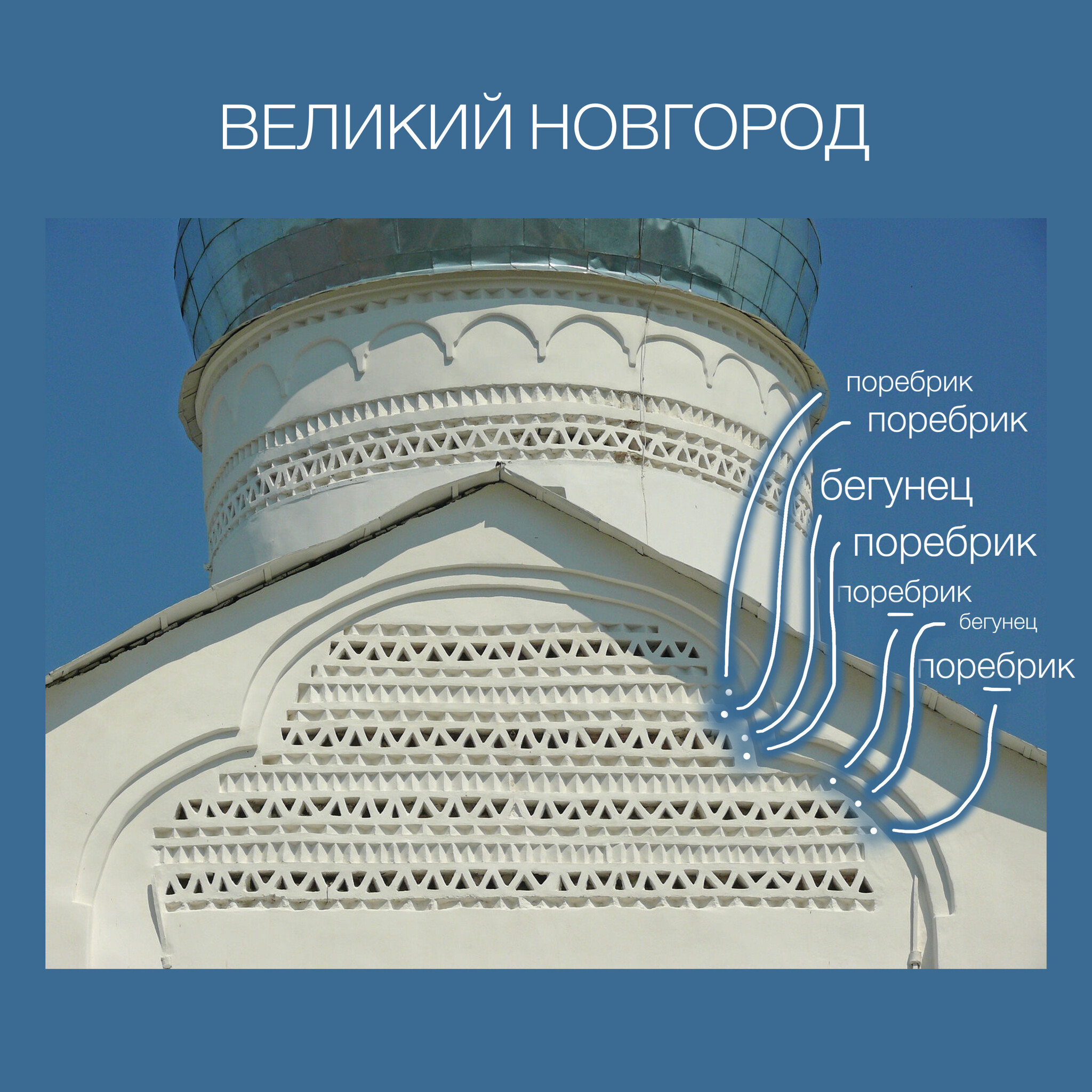 Представляю вам исконные русские Три Полоски: поребрик, бегунец, и снова поребрик. Всё, больше нельзя на церковь вешать, сказали зодчие* Меньше - можно (бывает один поребрик и один бегунец), больше - нет. Но ведь как красиво.