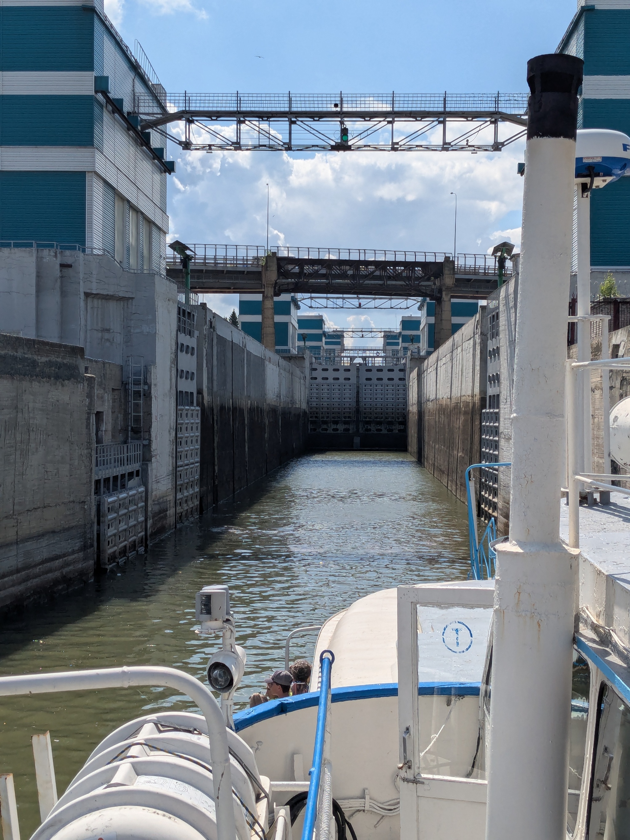 Всегда было интересно, как суда из реки попадают в водохранилище. К счастью, удовлетворить любопытство, как оказалось, довольно просто - на сайте Новосибирского речфлота есть раздел с экскурсиями, экскурсия со шлюзованием стоит 2100 рублей, отправление от Речного вокзала, прибытие на пристань недалеко от пляжа Звезда. Собственно, на маршрутке до пляжа можно добраться за 60 рублей, на электричке - примерно за 100.