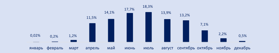 Распределение ДТП с участием СИМ по месяцам