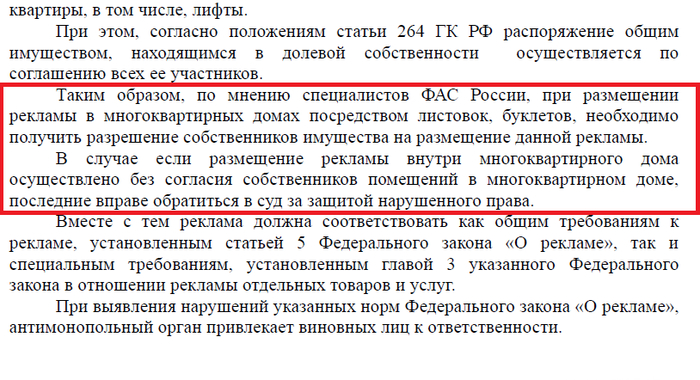 Получается, что если собственники жилья не давали согласия, то размещение рекламы запрещено.