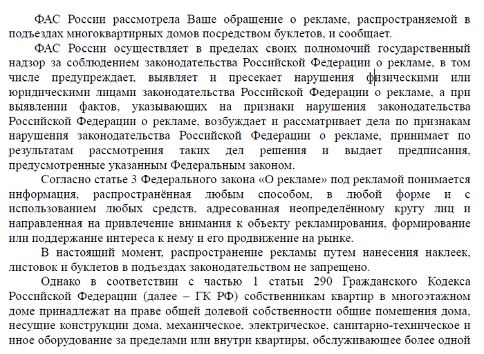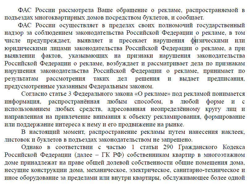 Один пикабушник @Kakaru описывал как можно бороться со спам звонками Как наказать телефонных спамеров. Поступил по его же методу, написав в ФАС заявление в свободной форме и приложив фотографии дверей квартир, на что через 1,5 недели получил ответ: