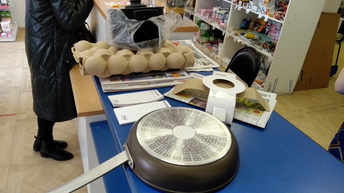 Сегодняшним, солнечным субботним днём, я явился за своей посылкой в отделении почты России. Я заказал себе сковороду и кастрюлю из известного магазина IKEA. К сожалению в нашем небольшом городке магазина данной торговой марки нет, но я наслышан о качестве товаров этого бренда и решил порадовать себя посудой для индукционной плиты из IKEA. Просто захотелось наверно, есть надежда на качество и долговечность, хотя кто знает, время покажет. К недостаткам скажу что часть товара, что особо приглянулся, к сожалению не доступно для заказа онлайн. Пришлось выбрать другое. Заказал, оплатил, жду, пара дней и посылка на ближайшем почтовом отделении. Прихожу на почту - очередь, аж на улице ждут. Удивился, пришел попозже - никого. Пять минут поискали посылку, выносят и вот что я вижу