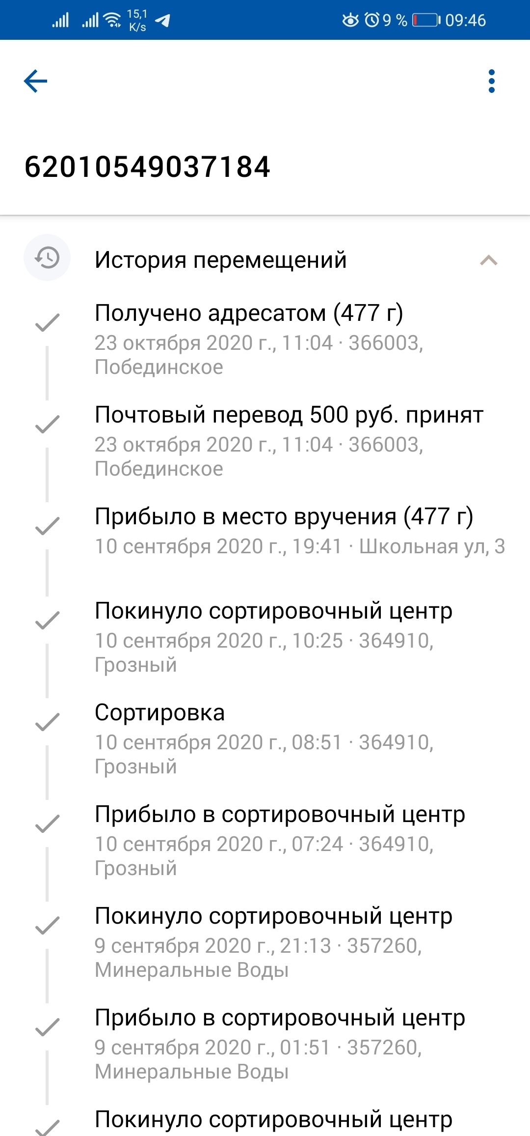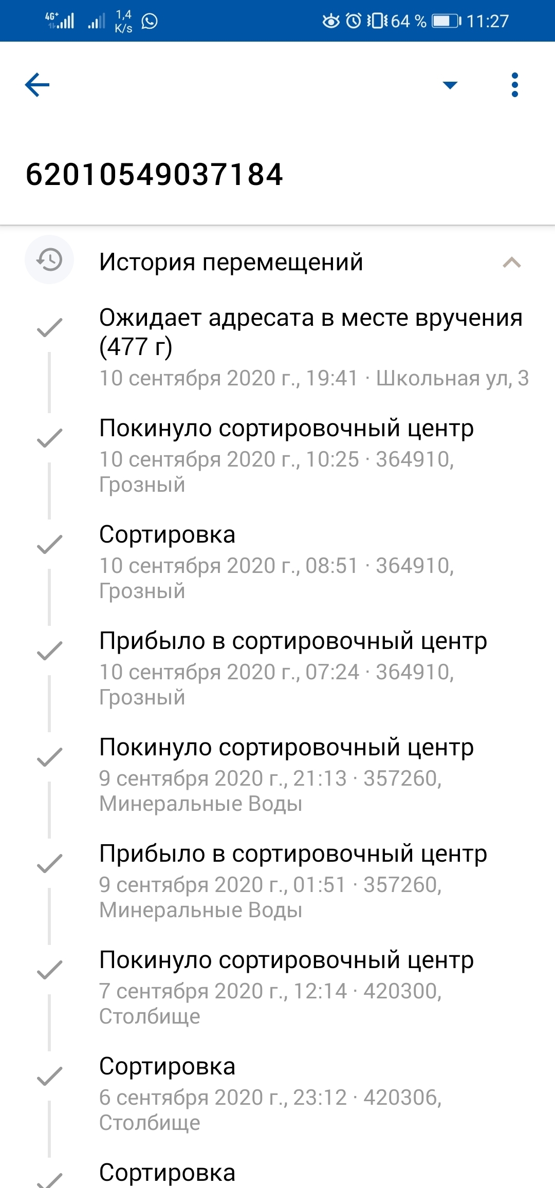 Проходит несколько минут и посылка, о которой мне пришло уведомление, начинает движение.