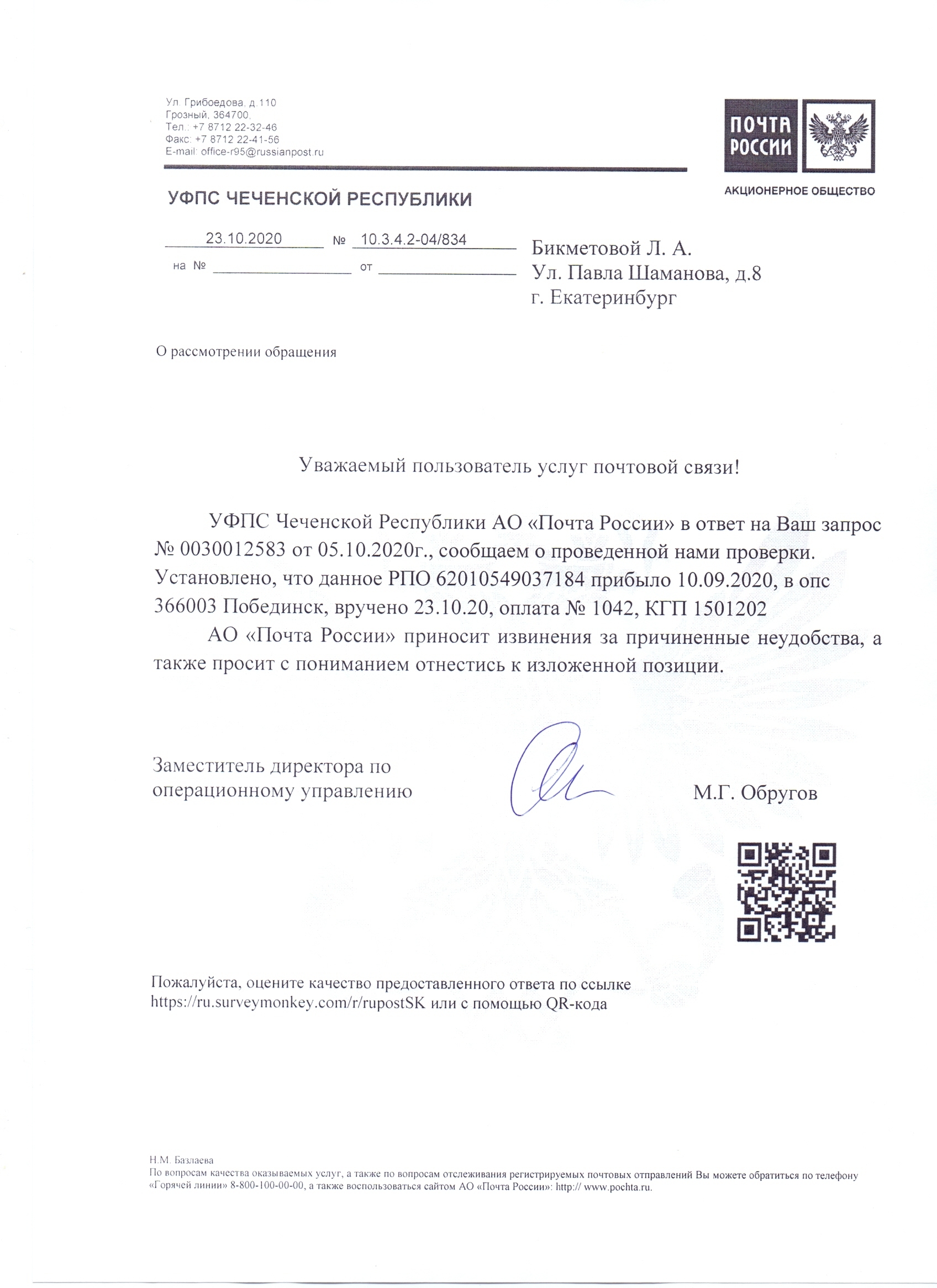 То есть человек даже с почты не выходил, сразу отправил что-то обратно.