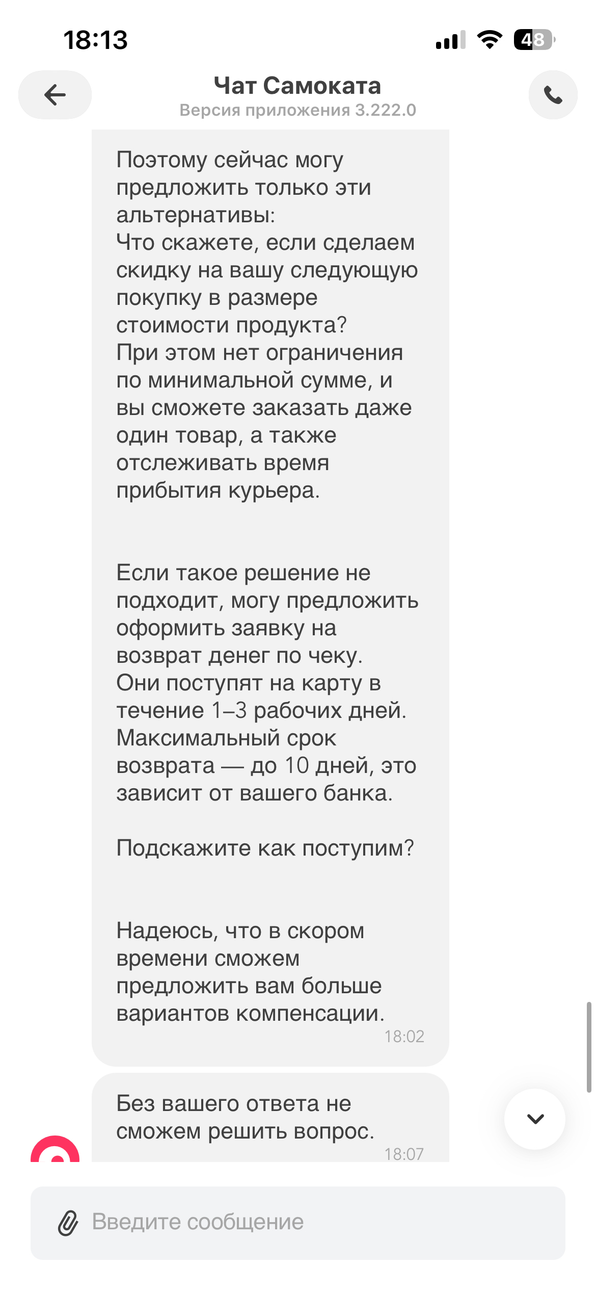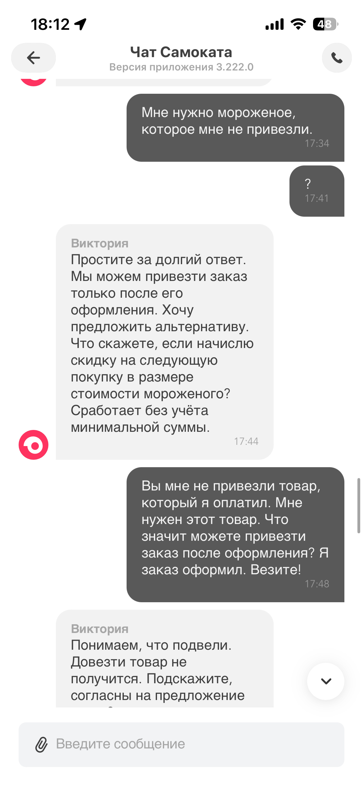 Сделал сегодня заказ в самокате. Захотел кинцо посмотреть и вкусняшками закинуться, а в итоге долгая борьба с поддержкой, до которой не дозвониться, только в чате общаться. В итоге вместо хорошего вечера испортили всё настроение мне. В ковидные времена сам у них работал и такой шляпы не было. Бывало что что-то не довезли по запаре, но всегда сразу брали и привозили то, что не положили. Либо по пути с заказом, либо отдельно бегали и доносили. А сейчас скатились они непонятно куда… Интересный прикол, под конец согласились прислать курьера, но после того как освободятся. Типа ты уже заплатил и никуда не денешься, жди паскуда. 😂