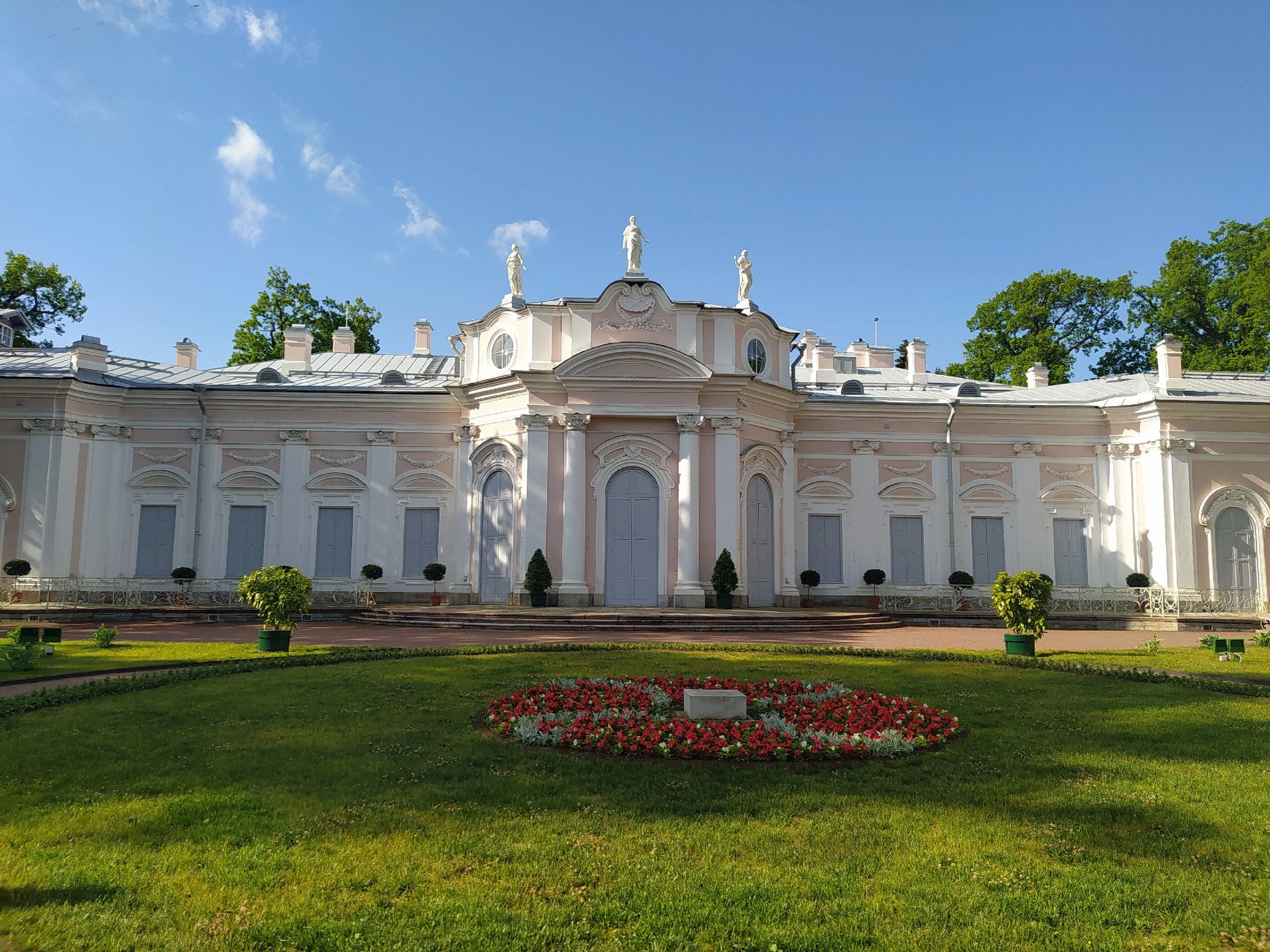 Перед дворцом разбит регулярный парк во французском стиле, со статуями, ровными газонами, коридорами из кустов, беседками, скрытыми в зелени. В общем, все то же, что и в Екатерининском парке в Пушкине, только на минималках, все ж парк довольно небольшой. Разочарование дня – статуи в парке сплошь копии. Где оригиналы – вопрос.