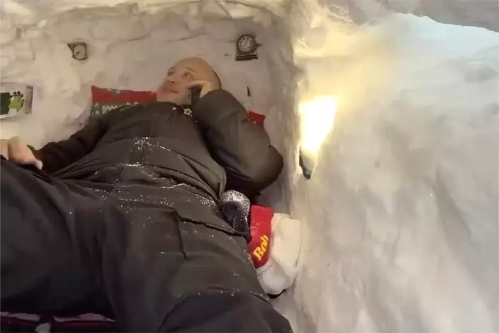 Мужчина устроил «квартиру» в сугробе, в которой отдыхает после работы. Кадры «жилплощади» опубликованы в Telegram-канале «360.ru».