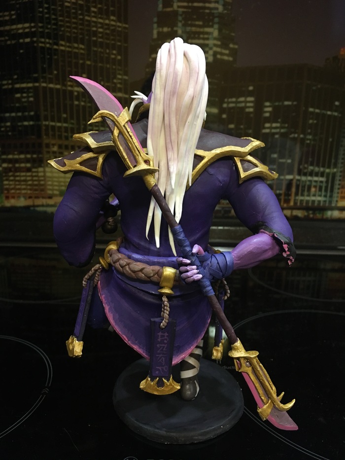 Встречайте нового героя игры Dota 2. Кто же это? Хаттори Ханзо у которого в руках вместо катаны нагината, чтобы нагибать врагов и окраска, как будто он сошёл со съёмочной площадки блокбастера "Пятьдесят оттенков фиолетового". Конечно же это Void spirit в аутентичном стиле за неимением ничего другого. Этот негодник настолько свежий, что для начала лепки мне понадобилось с десяток скриншотов, сделанных с презентационного ролика на YouTube. Но это того стоило. Теперь кто-то станет счастливым обладателем единственного в мире материализованного Void spirit.