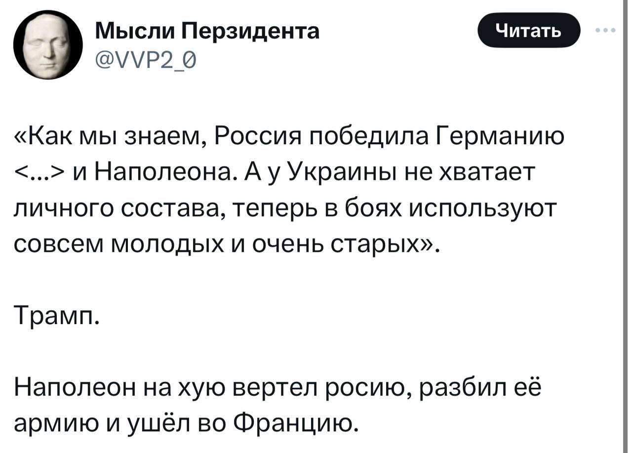 217 BorschRusso Политика Довертелся аж до самого Парижа 1 год назад Твиттерские "историки" не перестают удивлять Источники: 1, 2, 3 Война 1812 - как все было на самом деле Скриншот Политика X (Twitter) Россия США Дональд Трамп Русофобия История России Великая Отечественная война Наполеон 44 2 2 1 Ещё 0