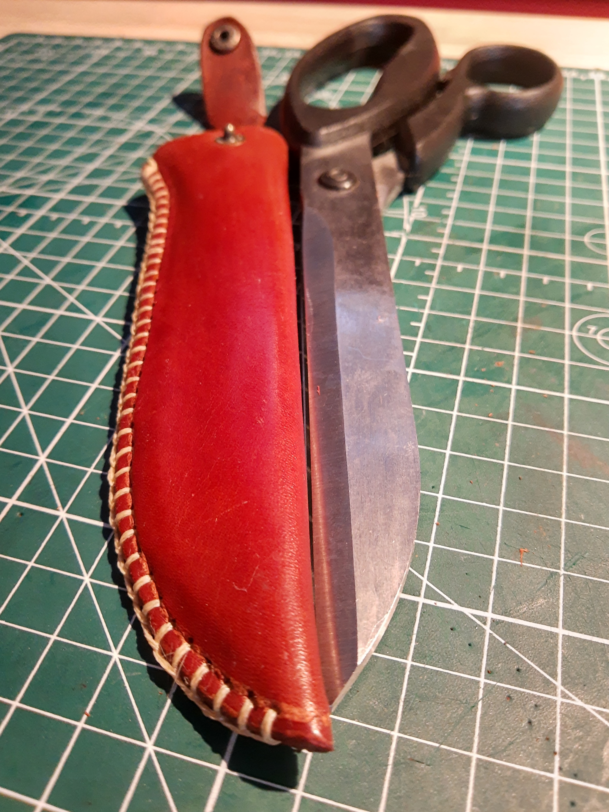 Достал заготовку чехла под ножницы 2.0 и принялся пробовать. Фото проб - выше.