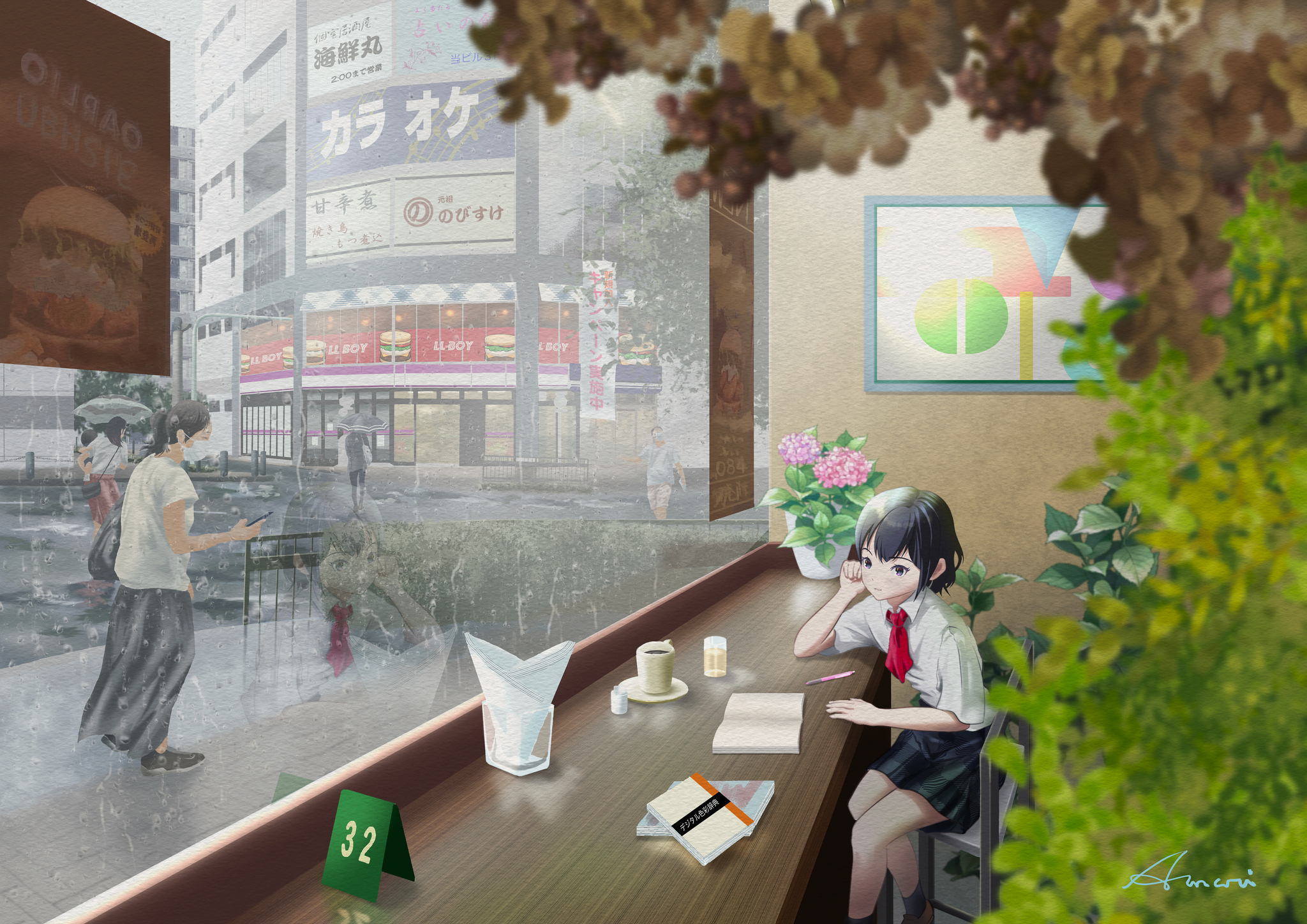 16 Mio12 Anime Arts Дождливый день 7 месяцев назад あまり Аниме Anime Art Original Character Девушки Кафе Дождь Сезон дождей Ещё 0