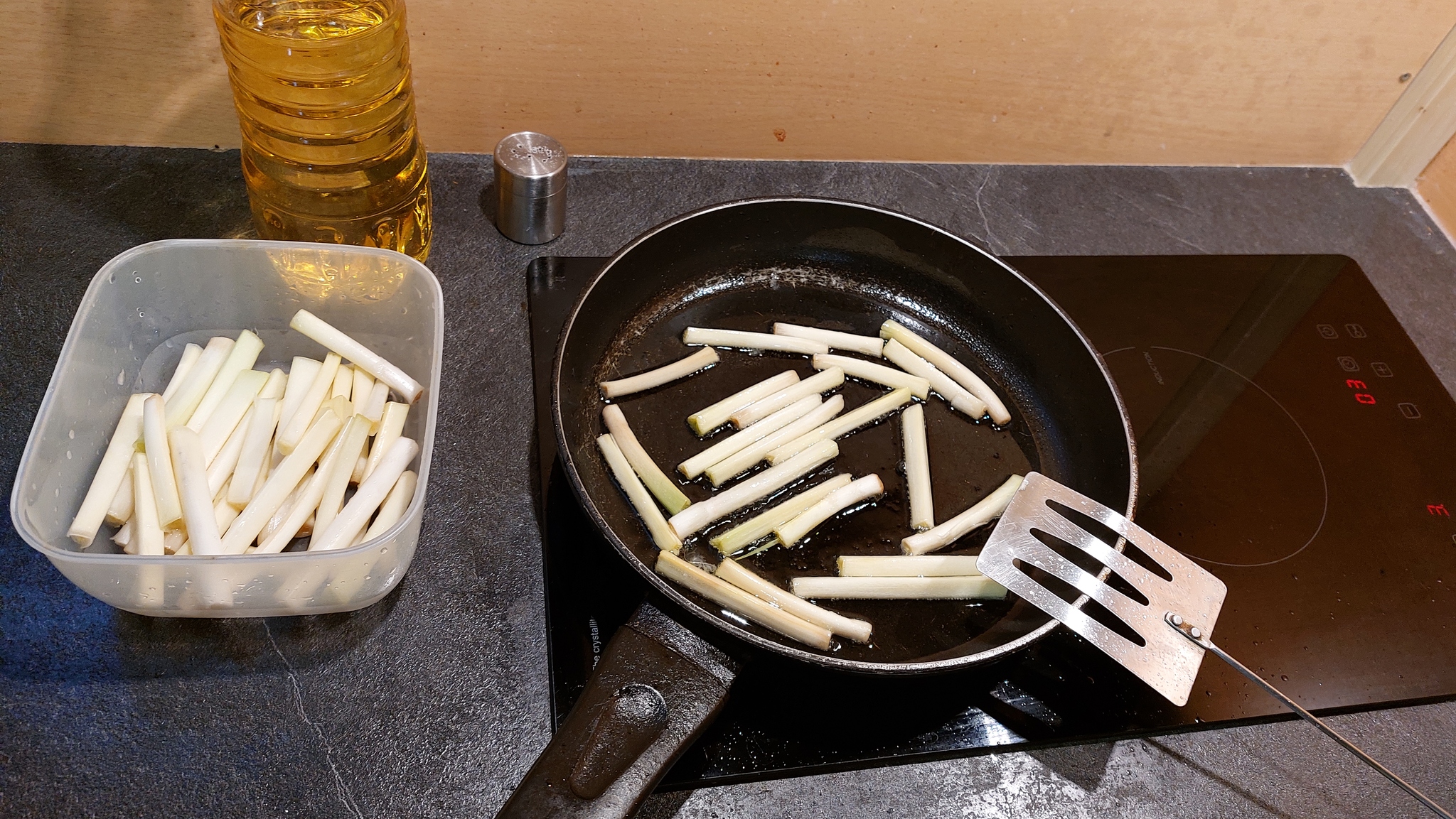 И так, подрезаем, вытаскиваем, отрываем два-три наружных листа, отрезаем белую часть (сантиметров пять). Все, можно есть сырыми, можно сварить, запечь, или пожарить. Вкус напоминает спаржу, а при жарке весьма вкусно пахнет. Присутствует некоторая волокнистость, но ее можно избежать если отрезать короче и отрывать больше листьев, а с дугой стороны, можно увеличить время приготовления. Я их жарил минут пять на растительном масле с солью без других продуктов и специй. После поедания, возникло сильное желание, пойти нарезать еще). В будущем хочу попробовать замариновать, думаю будет отличная закуска.