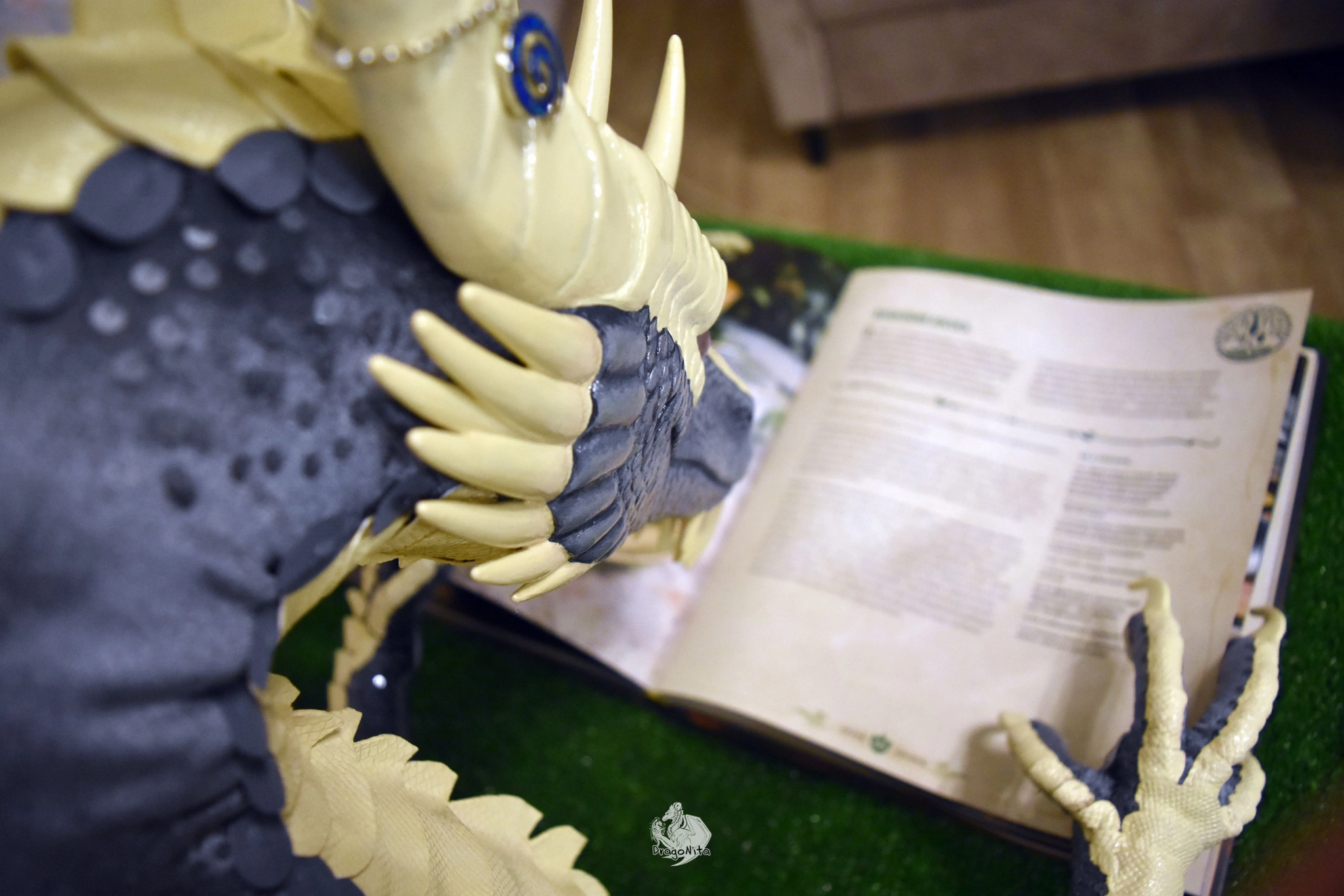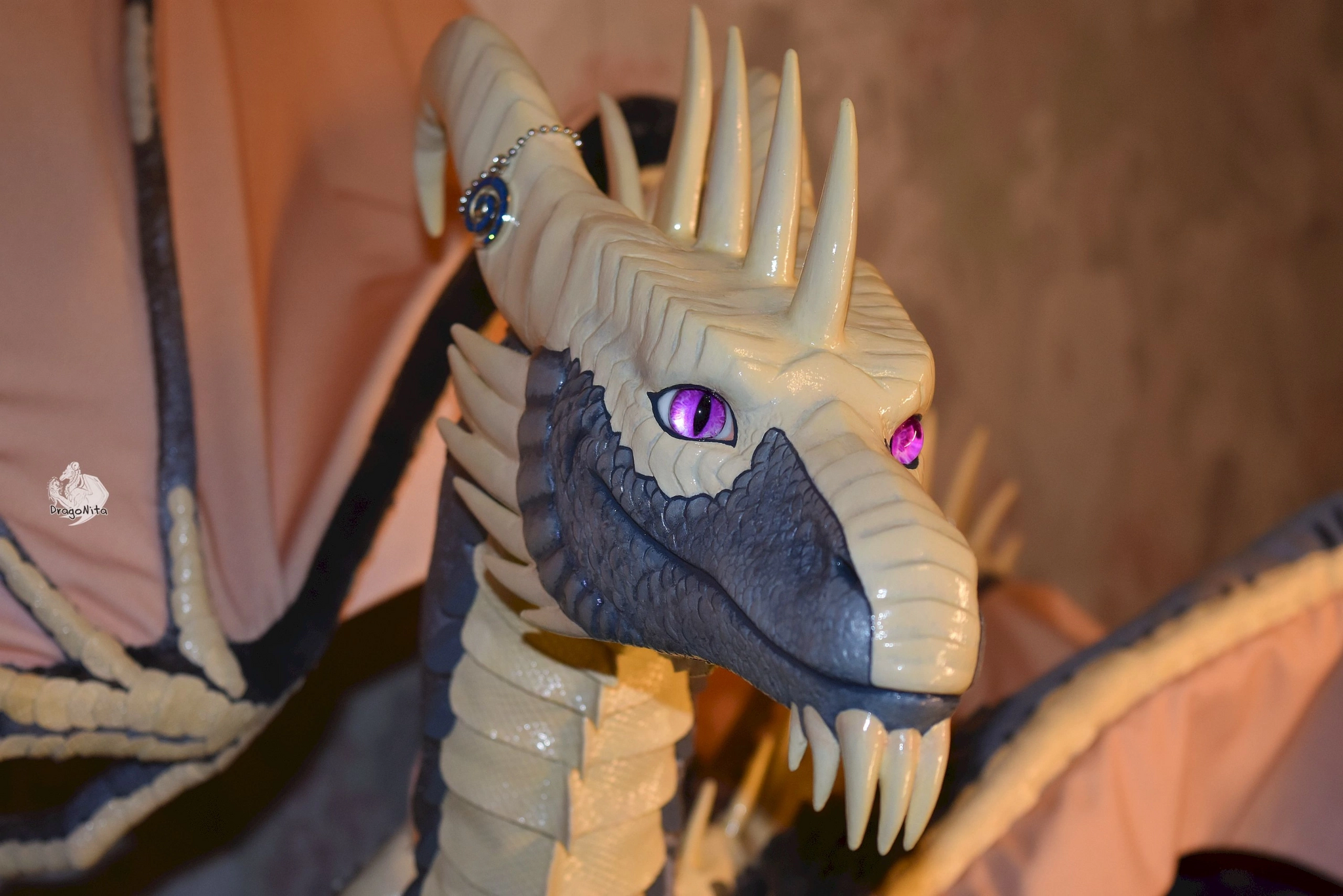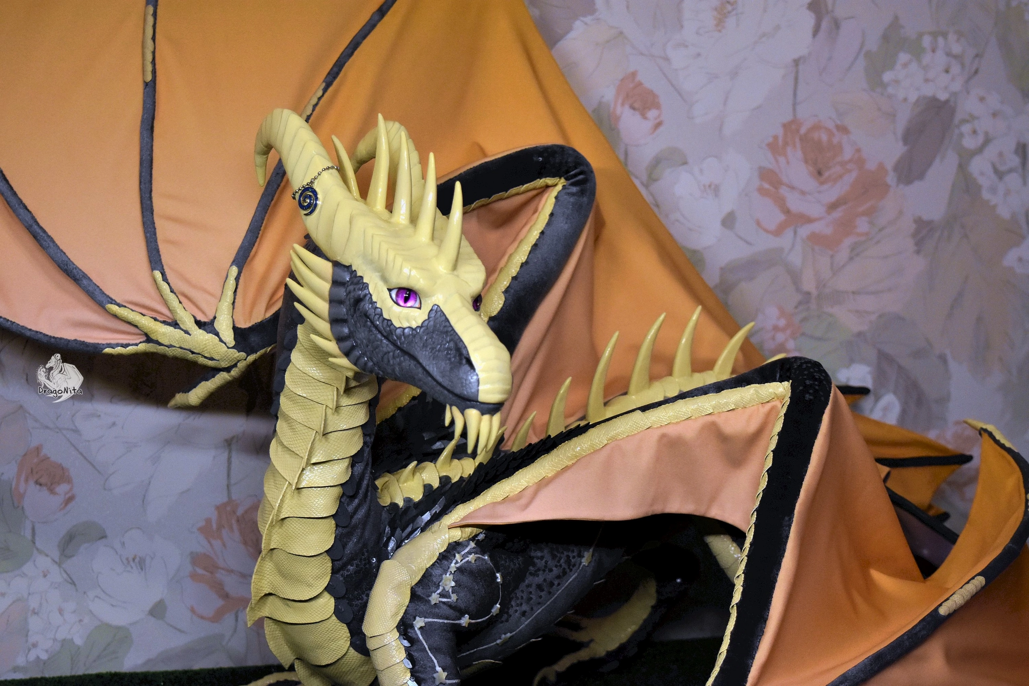 Длина тела дракона от носа до хвоста 224 см, высота в холке 29 см, высота по рога 60 см, размах крыльев 320 см.