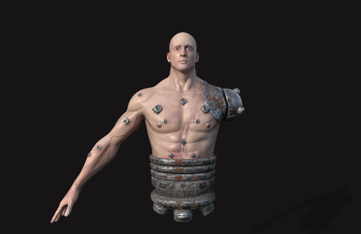 Одну руку ему все ж оставили, тк как он ей здоровался с Императором. Техножрецы не посмели посягнуть)).