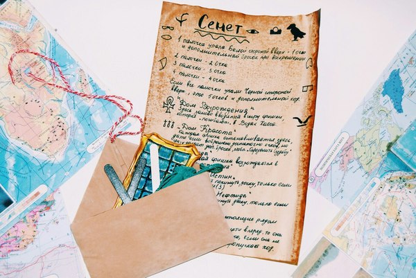 Поле и фишки сделала из полимерной глины. Решила сделать три комплекта фишек, для меня, для мужа и для дочки (дочка сама делала себе фишки и раскрашивала их). Палочки взяла из-под мороженого. "Папирус" с правилами - обычный лист А4 состаренный с помощью чая, кофе и духовки ))