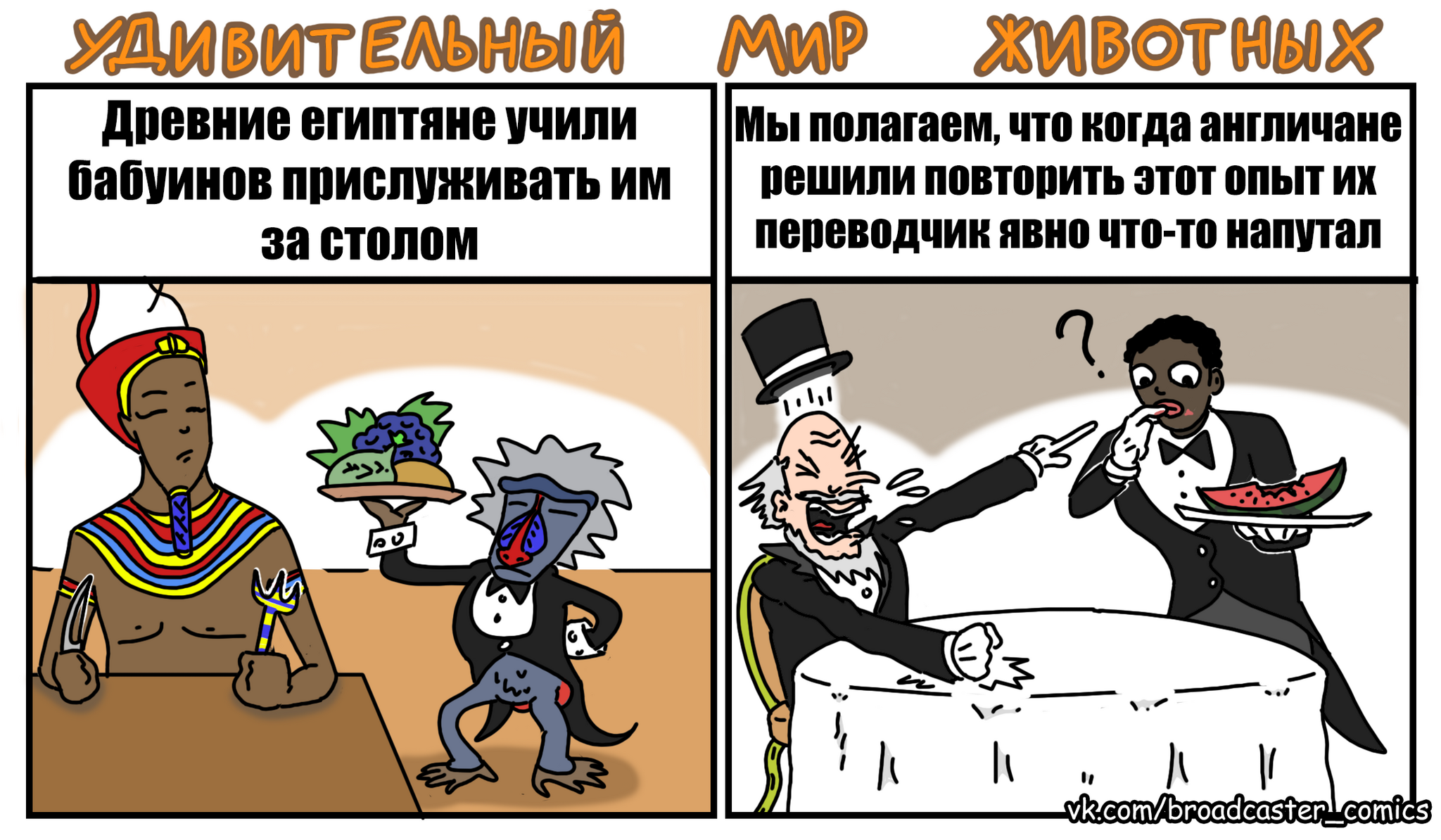 10 Br0adcaster Юмор Древние египтяне учили бабуинов прислуживать им за столом Серия Удивительный Мир Животных 1 год назад [моё] Юмор Комиксы Животные Карикатура Расизм 1 1 Ещё 0