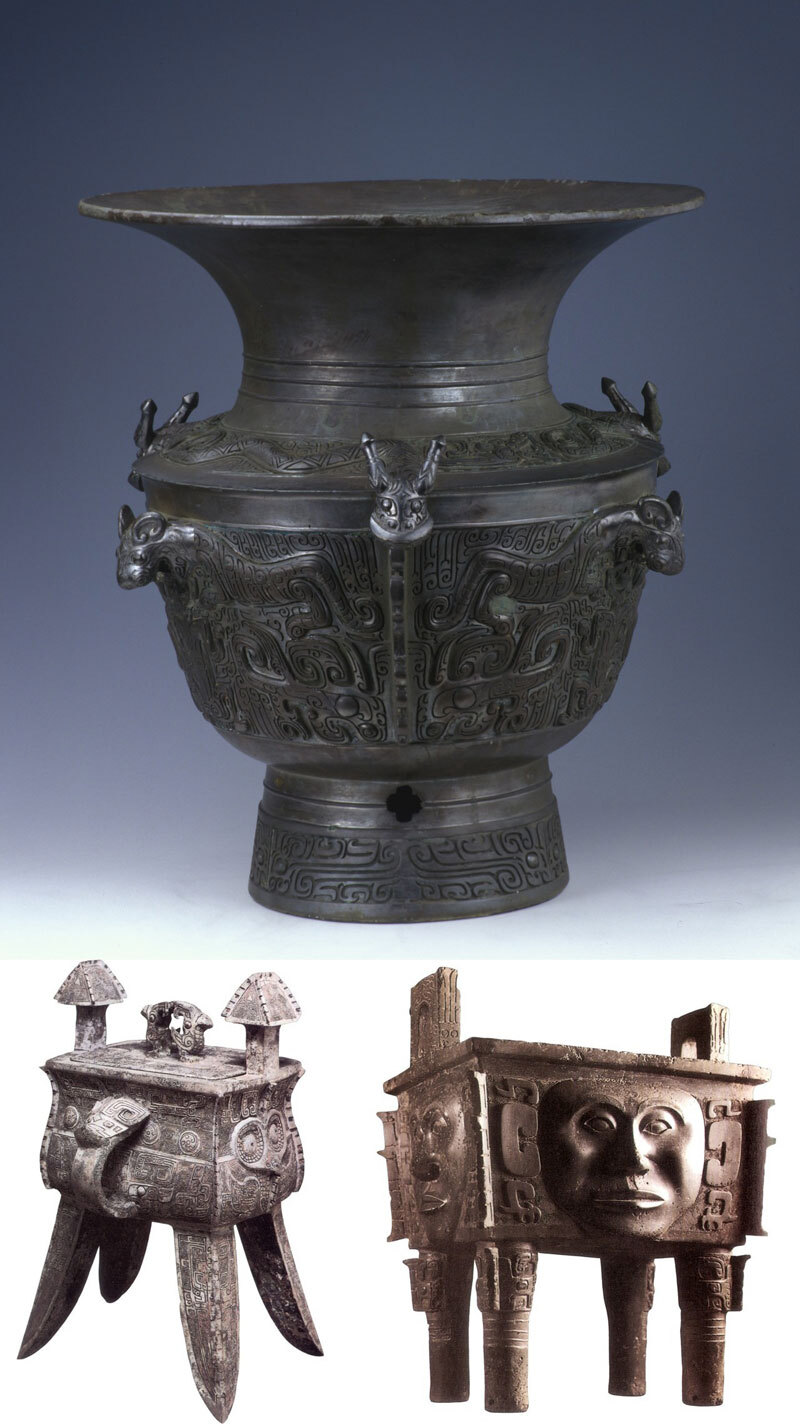 Возможно, ни одна культура бронзового века не соответствует своему названию лучше, чем культура Древнего Китая в период династии Шан Инь (конец 2-го тысячелетия до н. э.). В то время в городах были целые кварталы ремесленников, занятых обработкой металлов, изготовлением оружия и специальных ритуальных изделий из бронзы. Кроме нескольких мраморных скульптур этой эпохи, все сохранившиеся произведения искусства сделаны именно из бронзы.