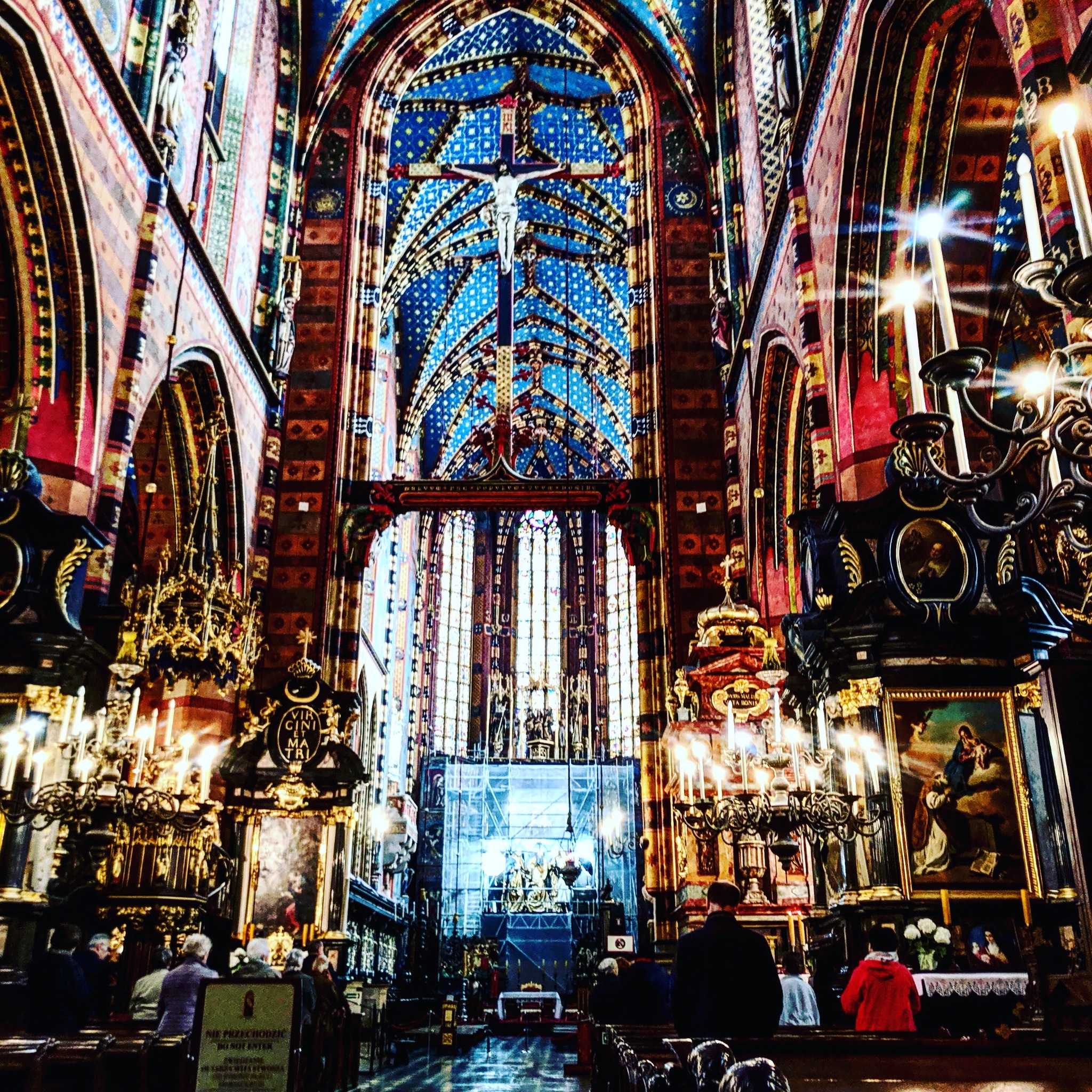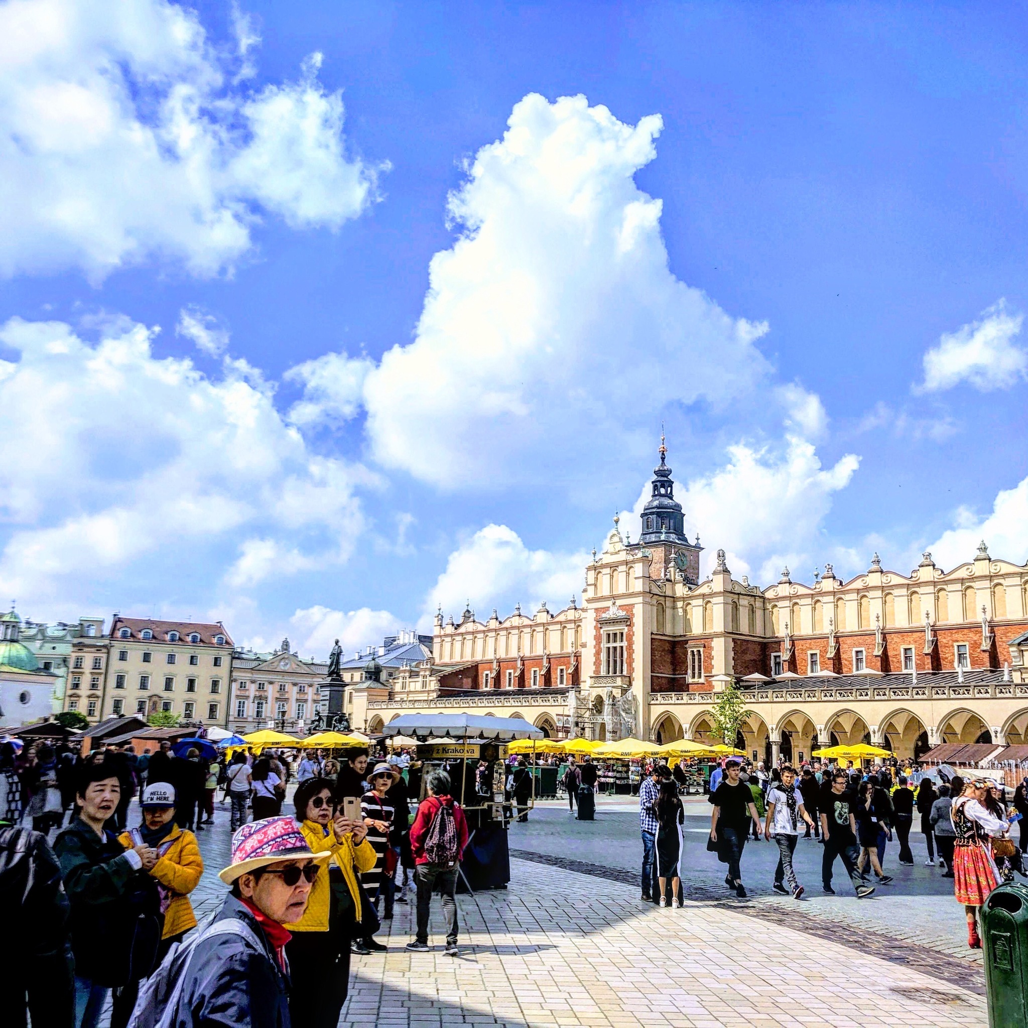 Центральная городская площадь, Главный Рынок – это действительно туристический рай. Здесь находится знаменитый Мариацкий костёл, история которого уходит чуть ли не в тринадцатый век. Понятно, что теперешнее здание гораздо более поздней постройки, но от этого оно выглядит не менее величественно и торжественно. Периодически площадь наполняется звуками трубы, доносящимися с одной из башен костела, и этот трубный зов отзывается в душе какими-то смутными ассоциациями.