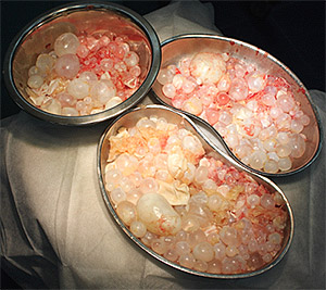 А для вас специально - результат заражения эхинококком, извлеченный из грудной клетки одного человека, каждый пузырек содержит тысячи паразитов. Источник заражения - собака