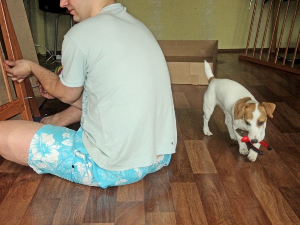 Я думала, только у меня собака так делает, катается на качельках для малыша, грызет, матрешки, причем если только дети в них играют, машинки тоже грызет, в детский автомобиль влезает, сидит вместе с детьми в нем, ещё внизу коляски ее раньше возили