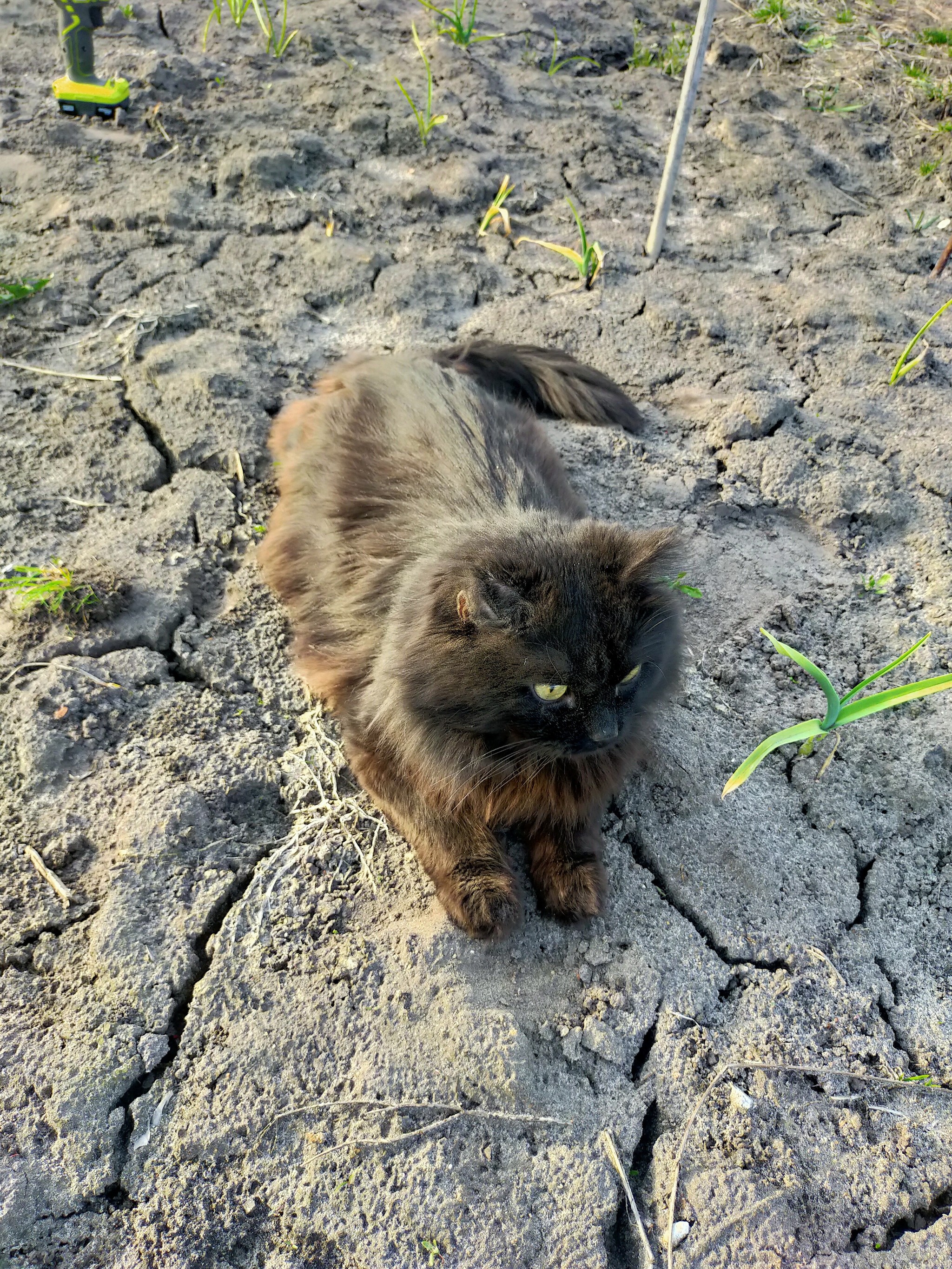 Помогает сажать огород. ( Прививки сделаны, ошейник от клещей имеется).
