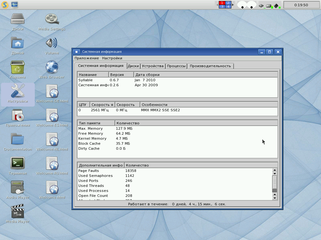 Начнём с приложения «Системная информация». Это так тут системный монитор называется. Весьма достойное приложение, которое даёт понять, что вообще тут происходит и сколько оно жрёт ресурсов.