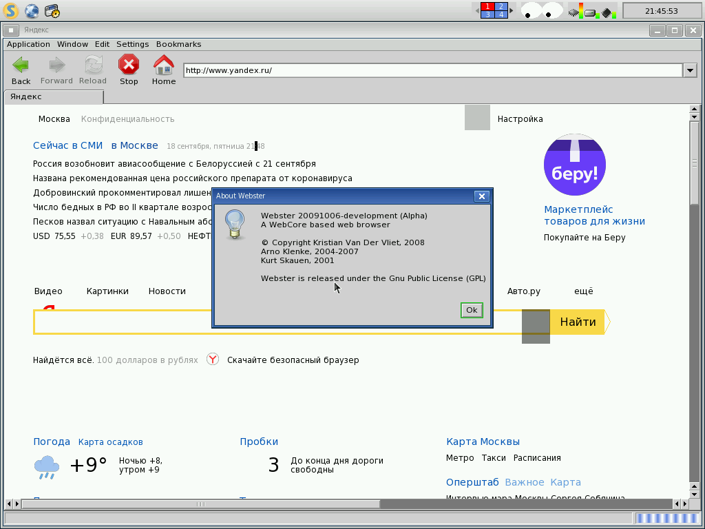 Здесь прекрасно всё: вообще, внешне система напомнила мне окружение Gnome 2 версии. Рабочий стол с файлами и ярлыками, панель задач сверху, главное меню в левой верхней части экрана. Любо — дорого глядеть, тем более, что на моей Toshiba L30 на тот момент крутился Debian 4.0 с аналогичным оформлением.