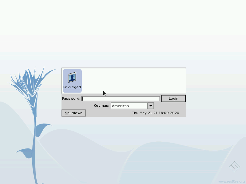 После перезапуска нас встречает окно входа — вводим пароль root и входим в систему. Уже потом, в панели управления, можно создать пользователей с правами администратора или без.