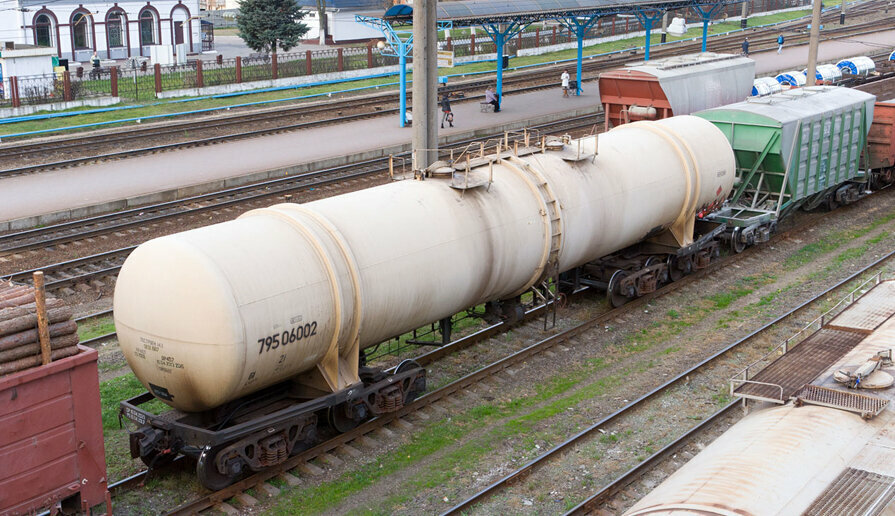 3) Модель 15-871. Восьмиосная цистерна грузоподьемностью 120 тонн. Для перевозки нефтепродуктов