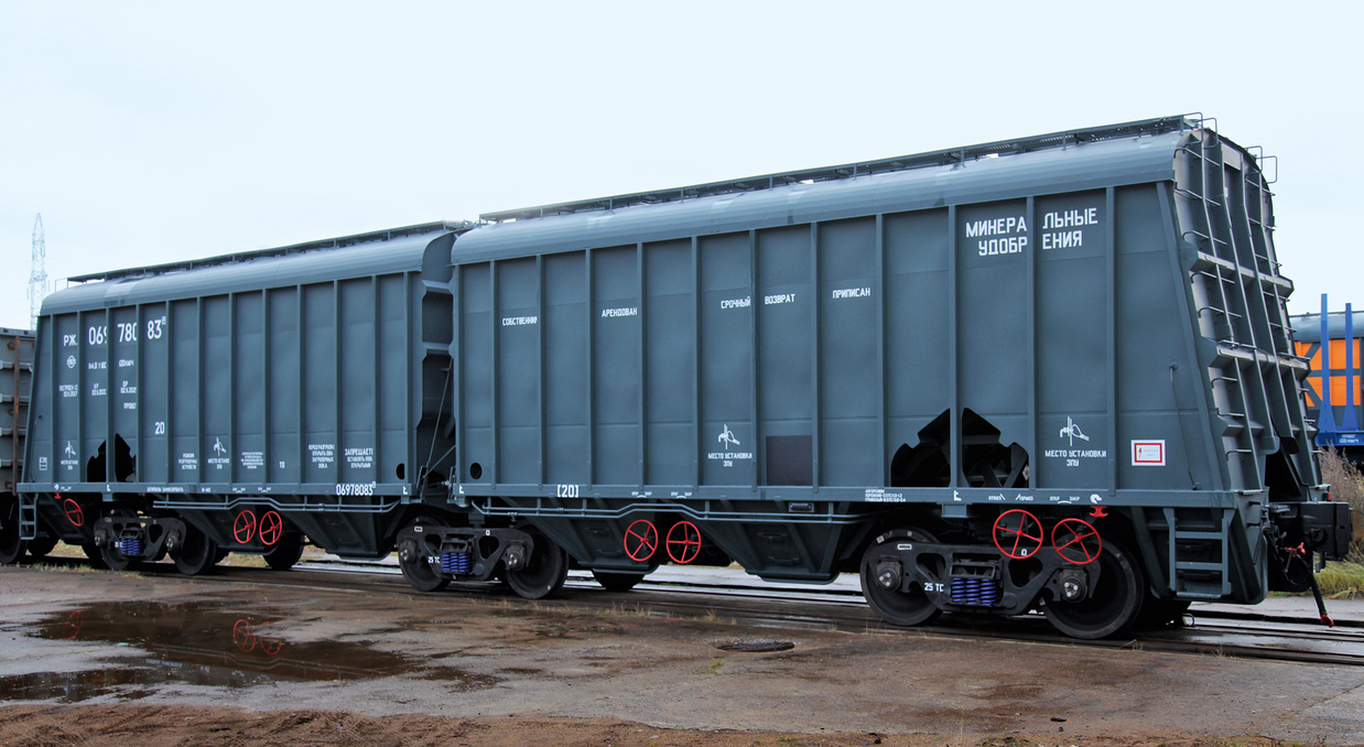 2) Модель 19-6978-01. Шестиосный хоппер грузоподъёмностью 113,5 тонн. Для перевозки минеральных удобрений